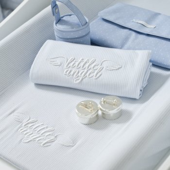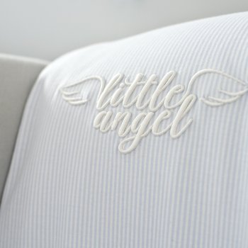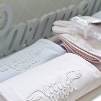 Kinga Korta was looking for a high-quality baby accessories. Considering hot Californian climate she has decided for textiles from Little Angel Collection made of soft cotton jersey as well as customized products. Most of accessories are decorated with a special embroderies with the name of her baby.