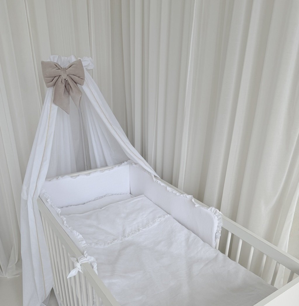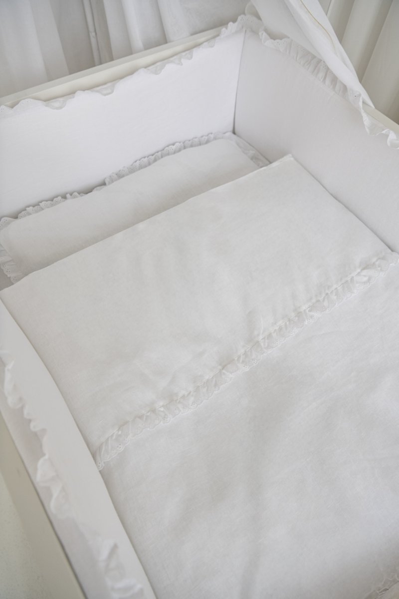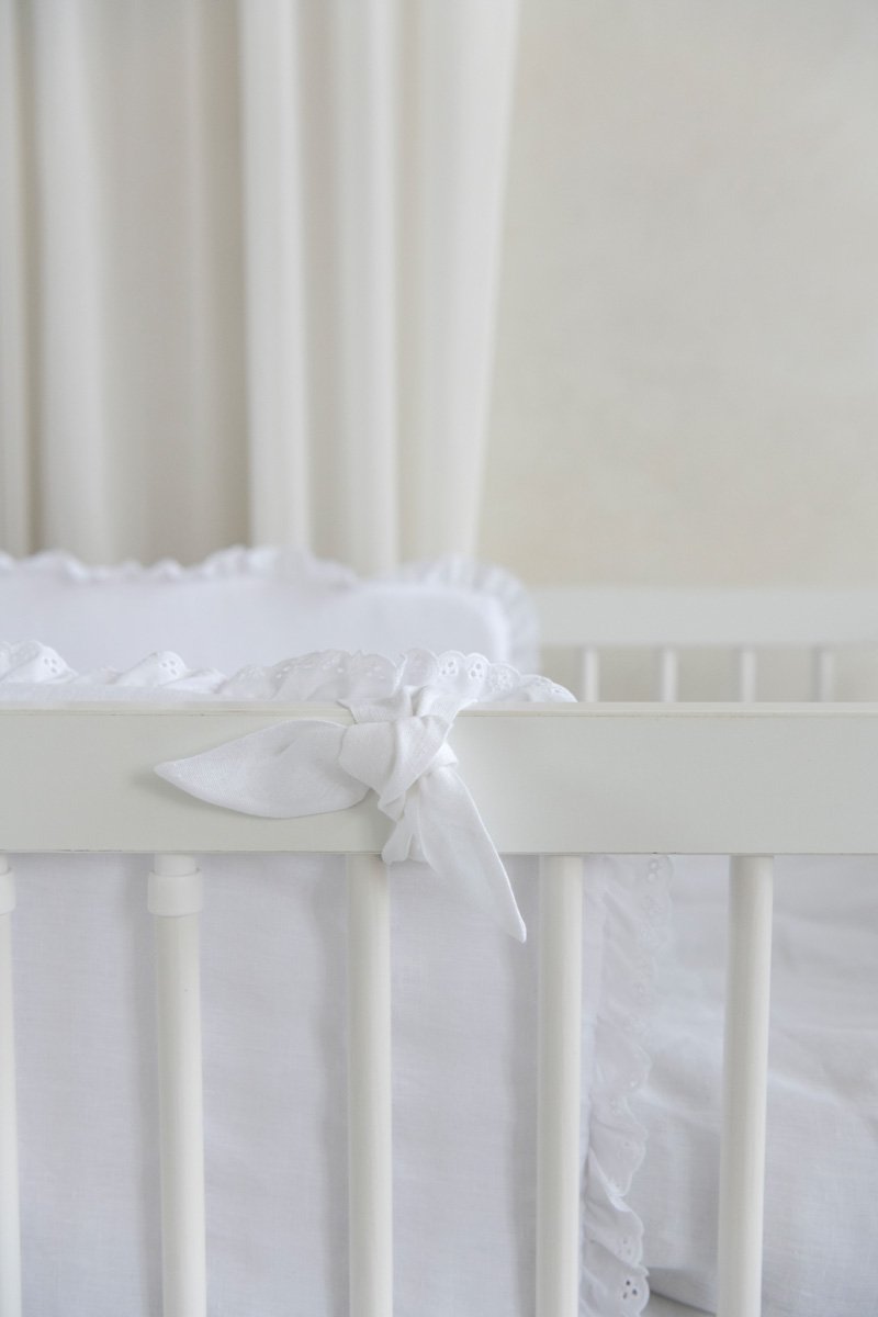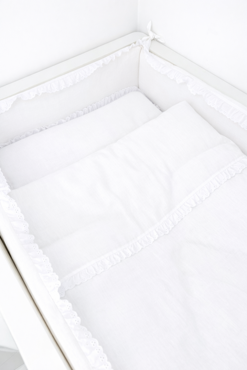 Delicate baby bedding made from high-quality, natural white linen, providing comfort and breathability for your little one’s sleep. The subtle Richelieu ruffle adds elegance and a light, romantic touch, making it the perfect choice for a cozy and stylish baby crib.