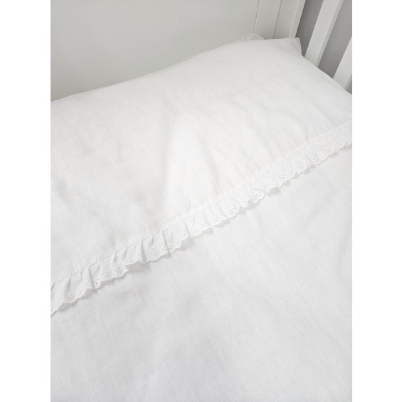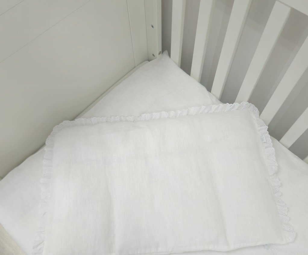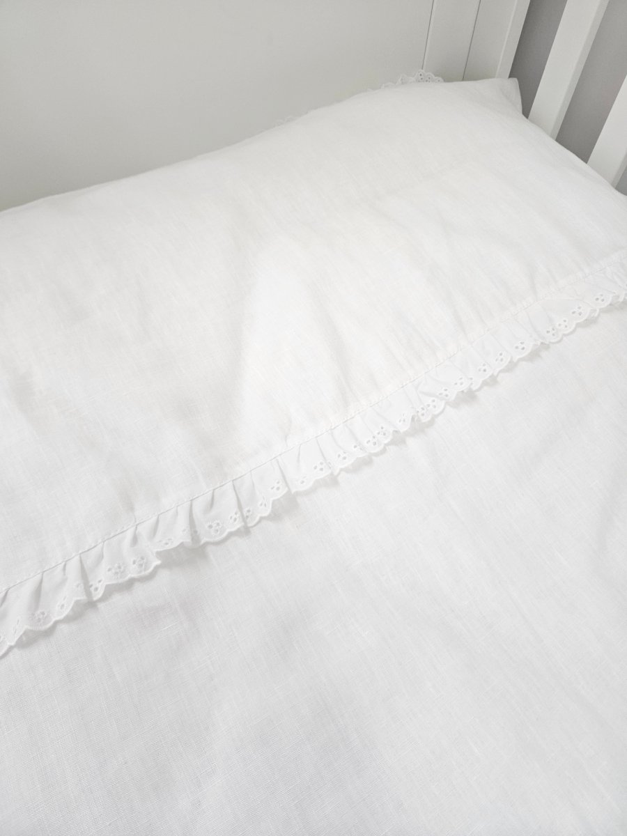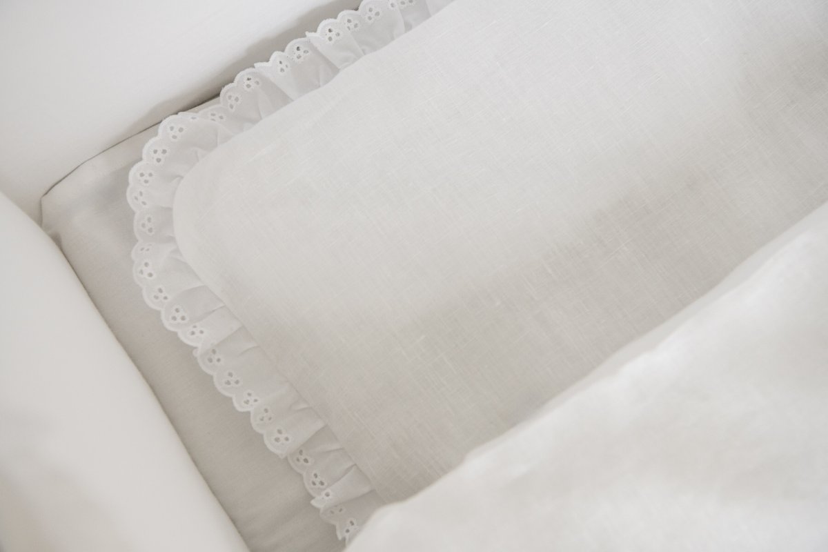 Delicate baby bedding made from high-quality, natural white linen, providing comfort and breathability for your little one’s sleep. The subtle Richelieu ruffle adds elegance and a light, romantic touch, making it the perfect choice for a cozy and stylish baby crib.