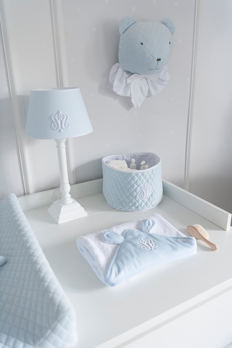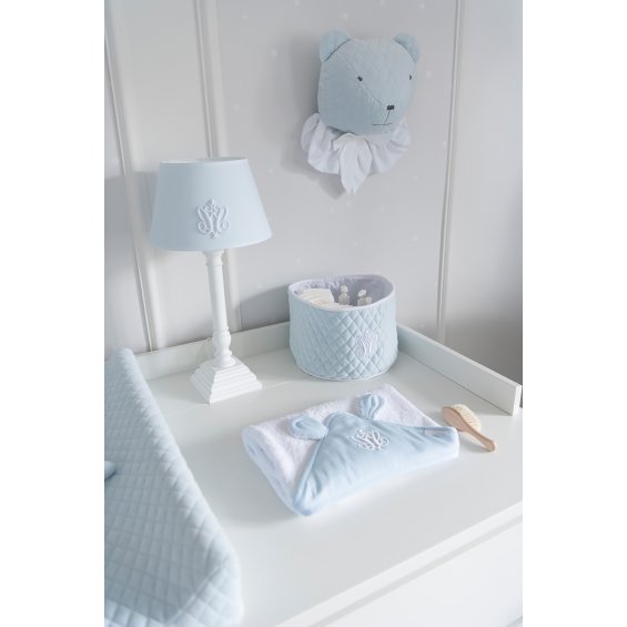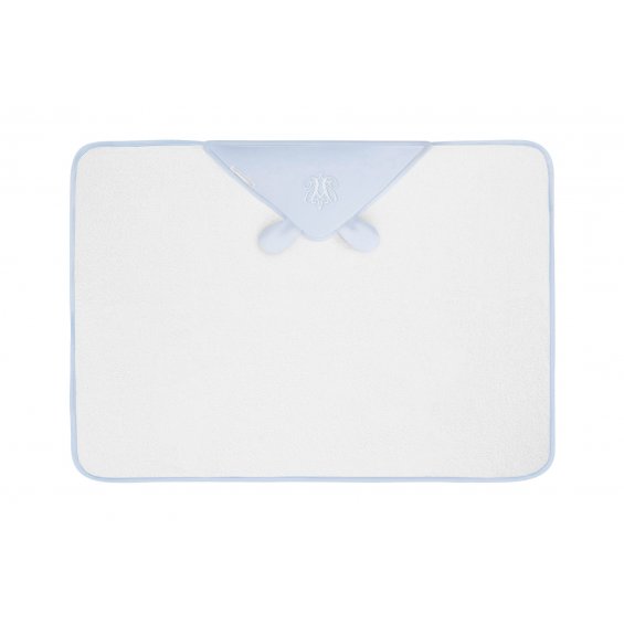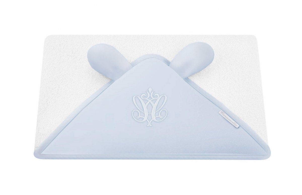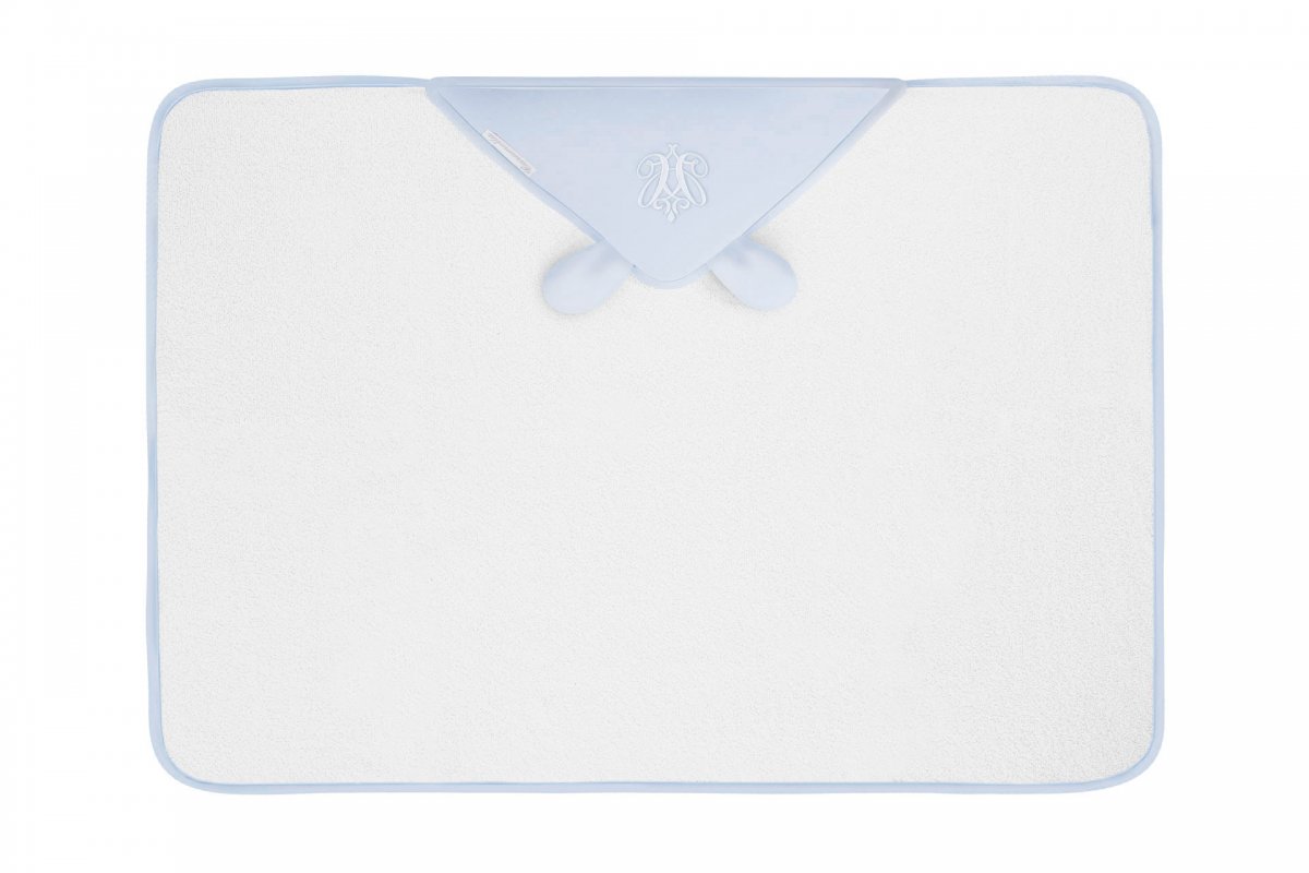 An elegant towel sewn from a white terry with a blue hood, finished with lovely ears and decorated with stylish three dimensional emblem. The size of the towel is larger than generally available on the market. It can be used by a little baby and an older child. That’s why you will be using it for a very long time.