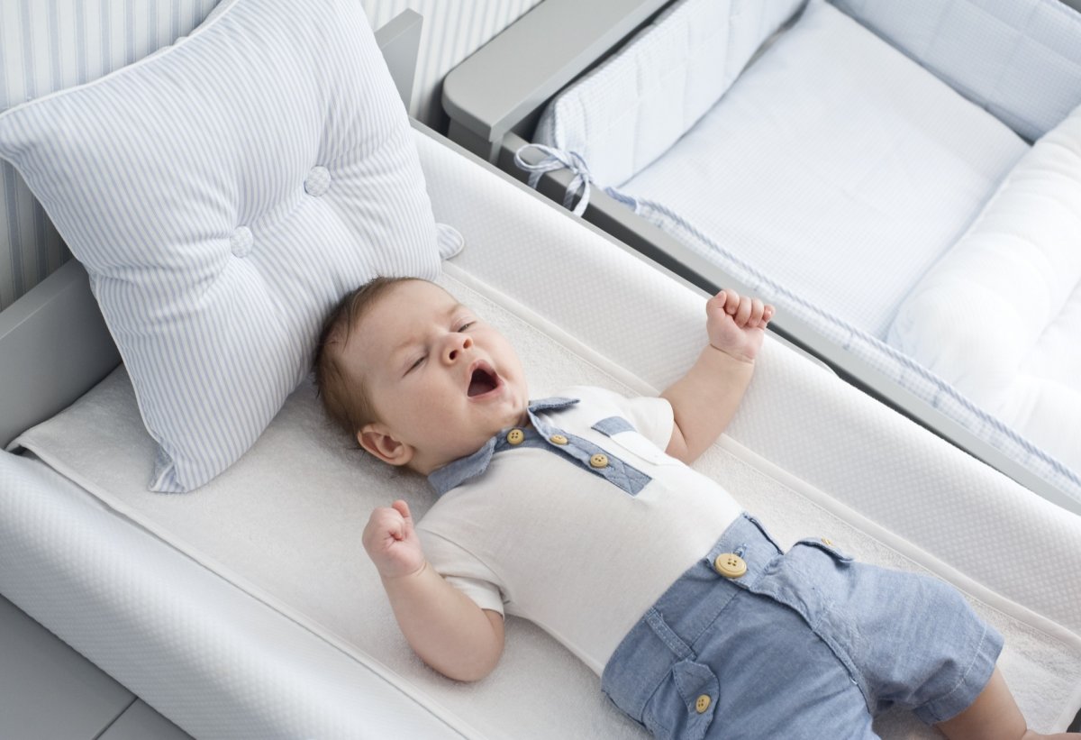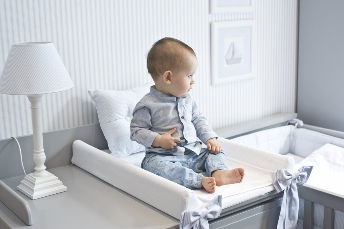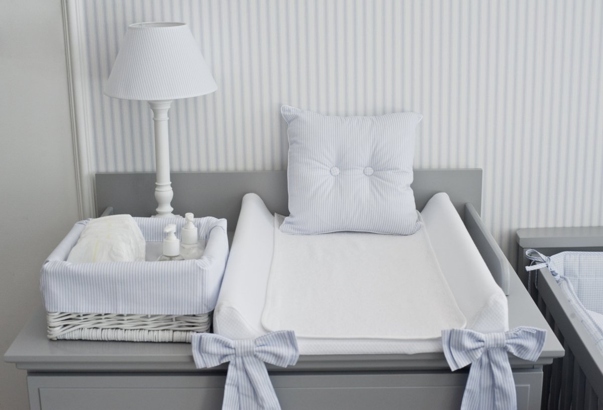 Baby changing station with azure bows