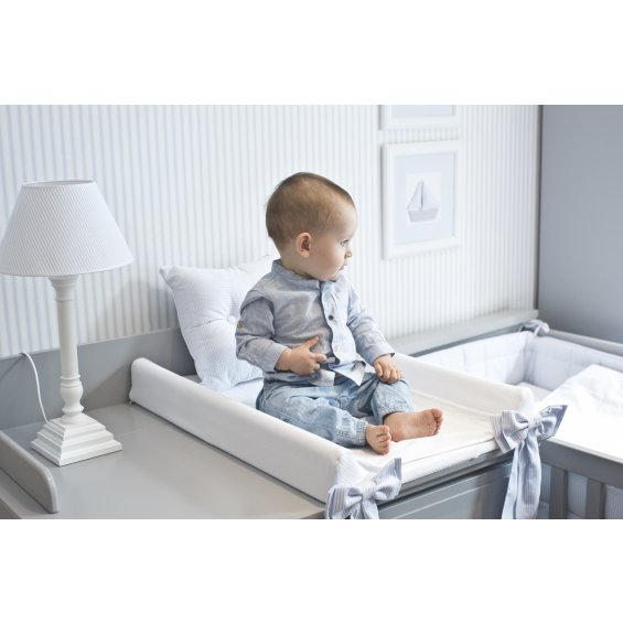 A baby changing station designed for taking care of your child, combines functionality with aesthetics. Soft oilcloth filling in an elegant cover decorated with bows of a colour that matches the collection.
