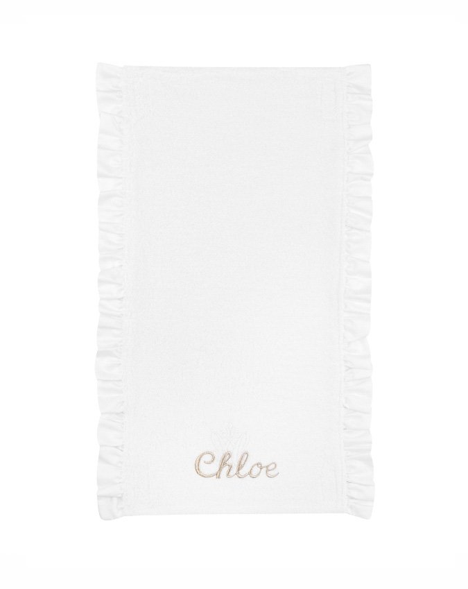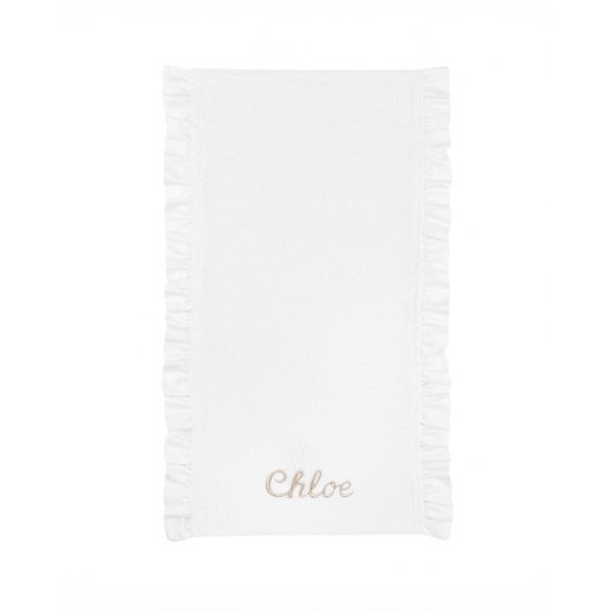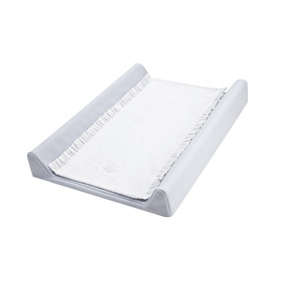Universal terry overlay that fits changing stations from all Caramella collections. Made of white terry fabric, decorated with a flounce and stylish gold embroidery with your child's name