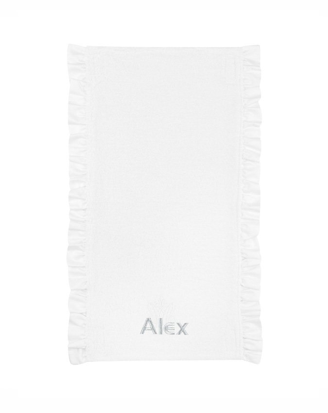 Universal terry overlay that fits changing stations from all Caramella collections. Made of white terry fabric, decorated with a flounce and stylish silver embroidery with your child's name