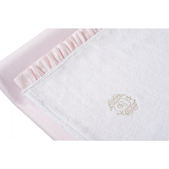 Terry overlay from the Golden Chic collection. Made of terry fabric, decorated with a stylish company emblem and a flounce