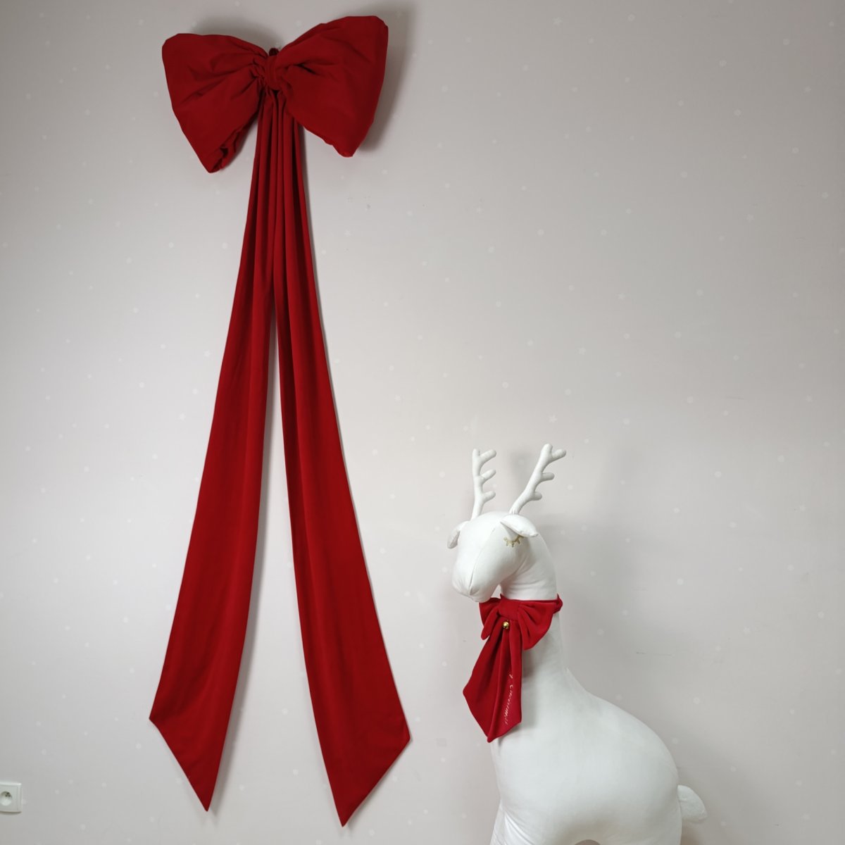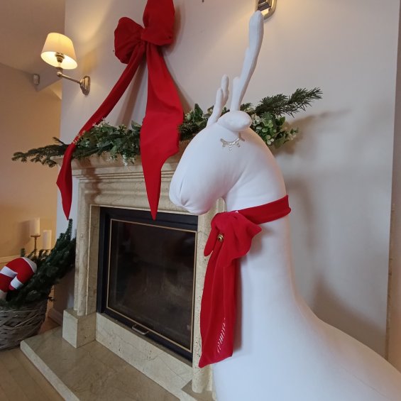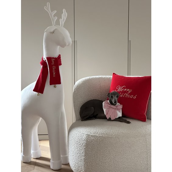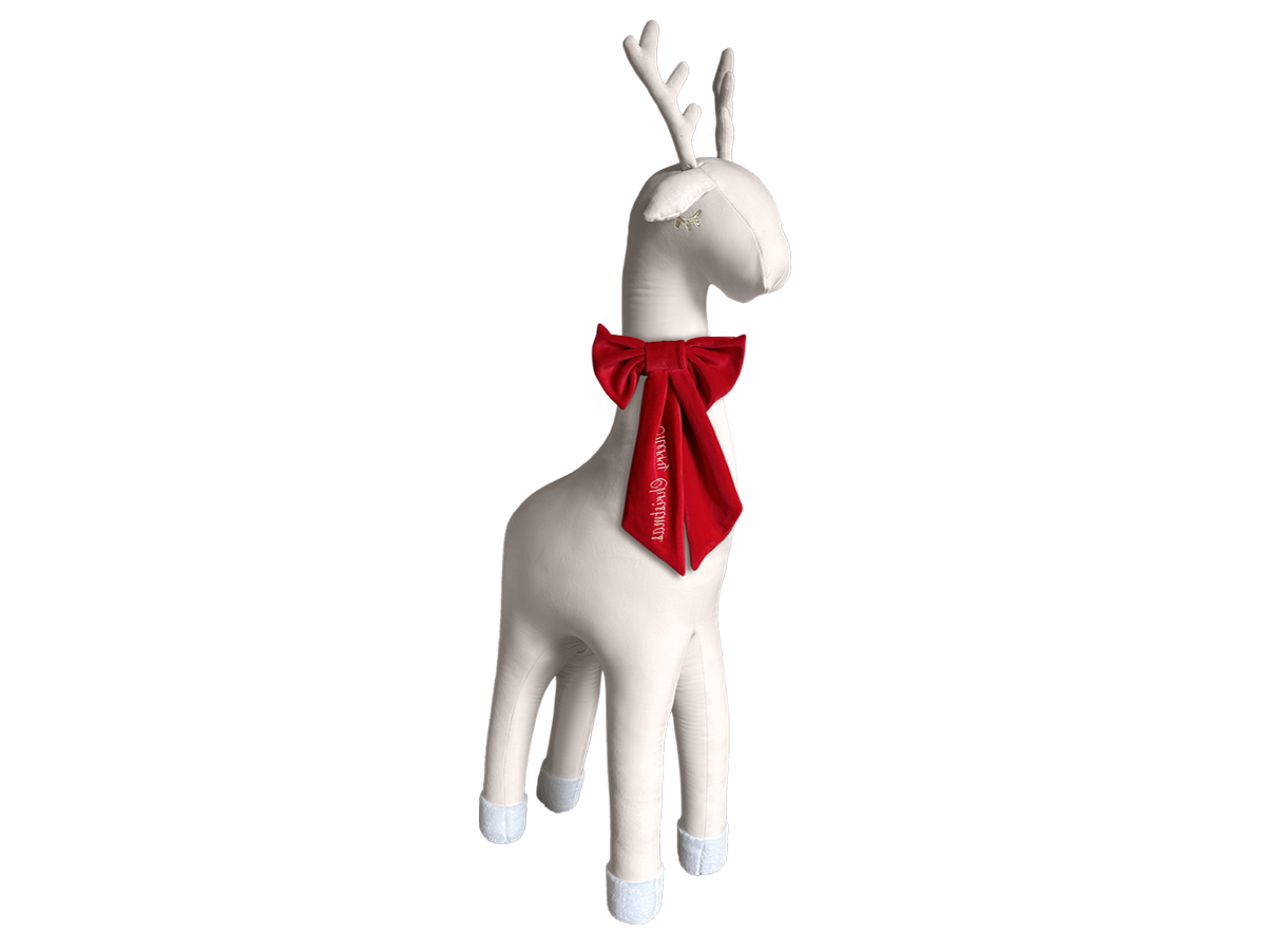 Adorable, handmade reindeer in size XL covered by easy-to-wash ivory textile. It will be a unique Christmas decoration in your home.