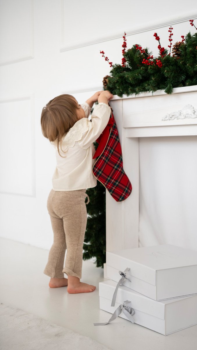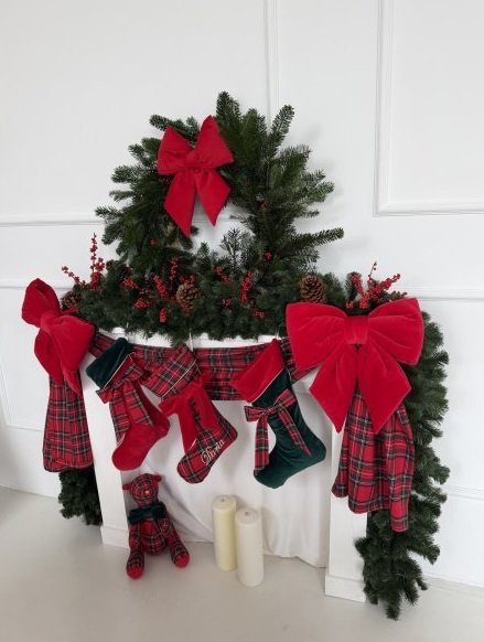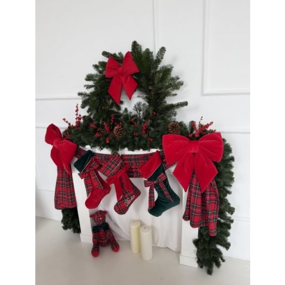 The green Christmas stocking, crafted from soft velour and adorned with a charming bow in a classic red plaid, is an elegant accent that brings a true holiday atmosphere into the home. Its traditional character and meticulous finish make it a beautiful decoration for the fireplace, staircase, or a child’s room. Perfect for small gifts, it creates a cohesive and harmonious look when paired with other Christmas elements kept in a timeless, classic style.