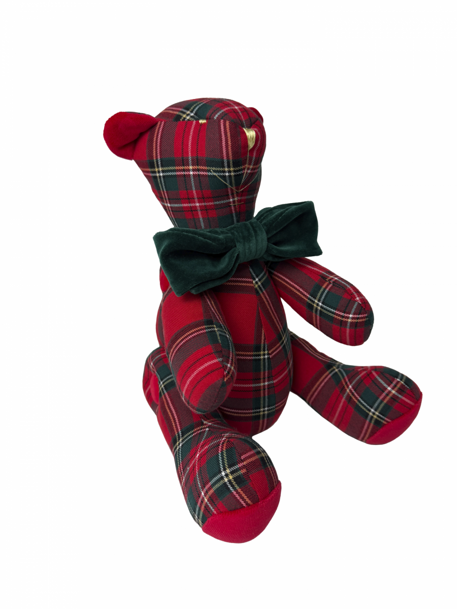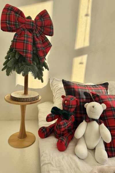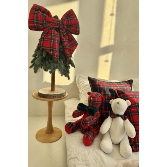 A Christmas teddy bear in plaid is a classic decoration that echoes timeless, homely ornaments. Made from soft fabric in a traditional red and green pattern, it radiates warmth and a festive atmosphere. Its simple, cozy form and enduring plaid design make it a perfect addition to decorations that have been part of family homes for generations. Ideal for placing by the Christmas tree, on a sideboard, or in a child’s room, adding a festive touch to any interior.