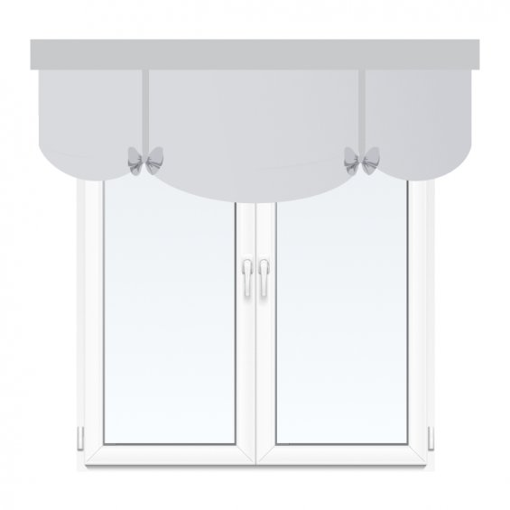 Valance decorated with sashes with bows. Valance is a short and static ‘form’ of a roller-blind, it is not equipped with a pull-down mechanism.