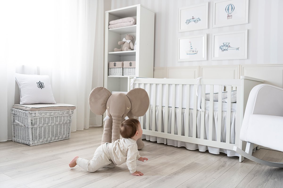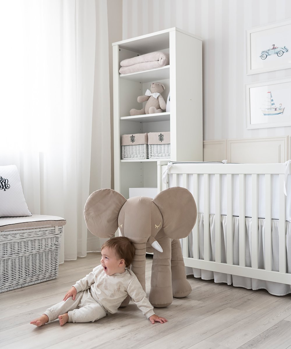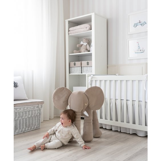 Adorable, handmade elephant in size XL covered by easy-to-wash beige textile. It will be your child's best friend and a beautiful decoration in your home.