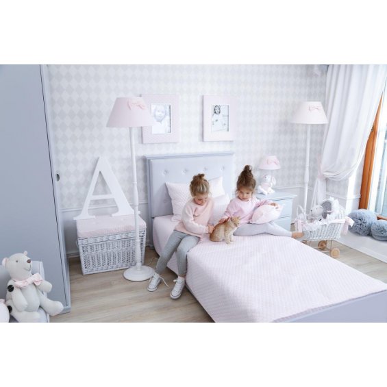 A beautiful quilted bedspread made of lovely girly baby pink textile. Because of its stiff structure, our bedspread perfectly covers a bed. It is available in two sizes. You can add quilted baby pink pillows to create perfecly composed decoration set for your child's bed.