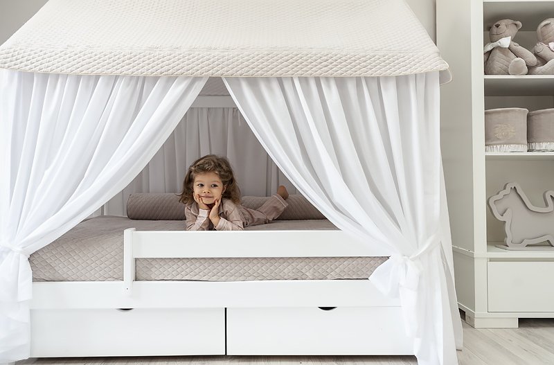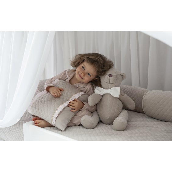 A beautiful quilted bedspread made of lovely beige velour. Because of its stiff structure, our bedspread perfectly covers a bed. You can add pillows to create perfecly composed decoration set for your child's bed.