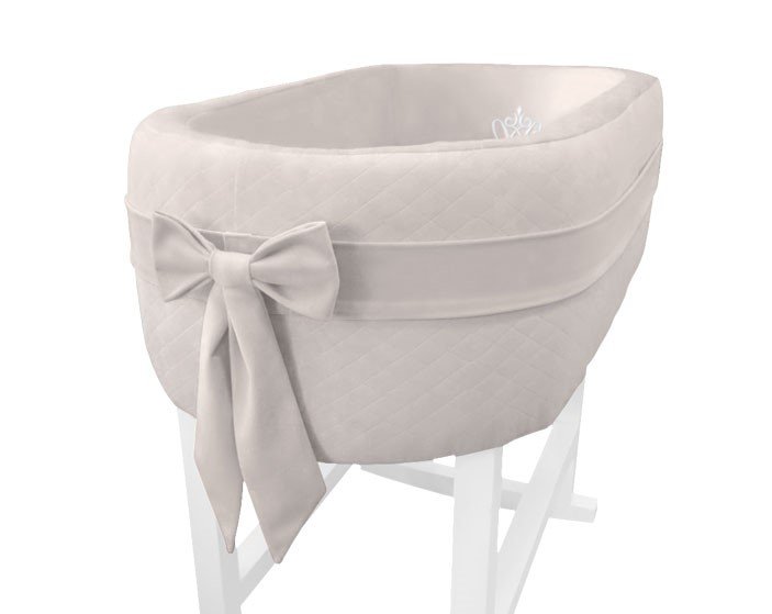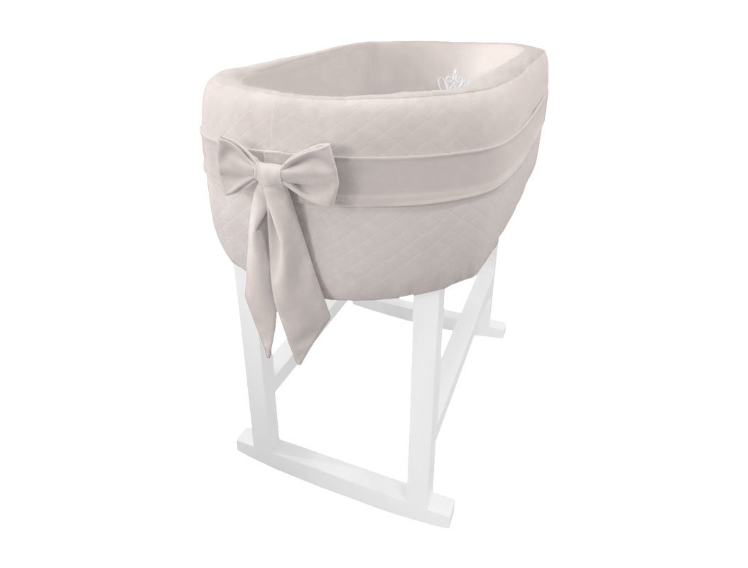 Decorative velvet bow to decorate the cradle. The beige bow goes perfectly with the beige, baby pink and baby blue cradle.