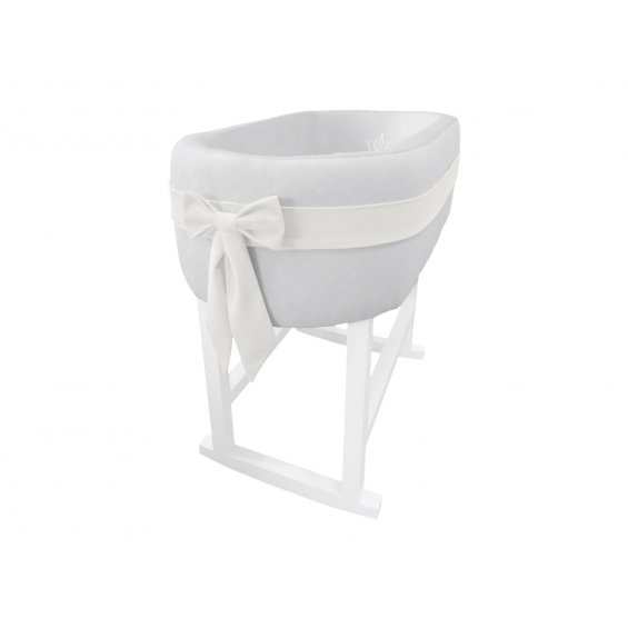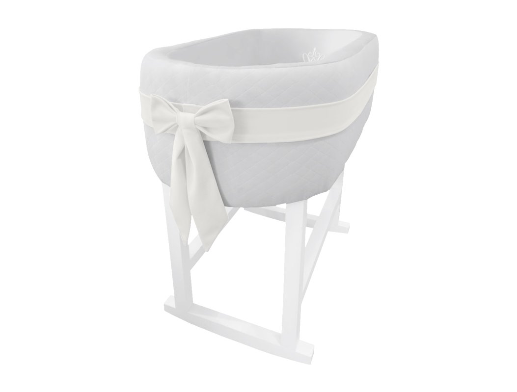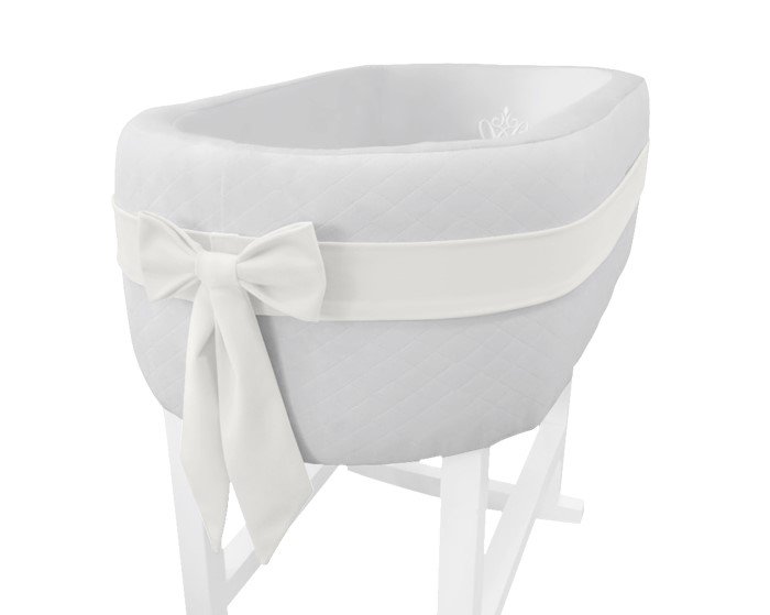 Decorative velvet bow to decorate the cradle. The grey bow goes perfectly with the grey, baby pink, baby blue and beige cradle.