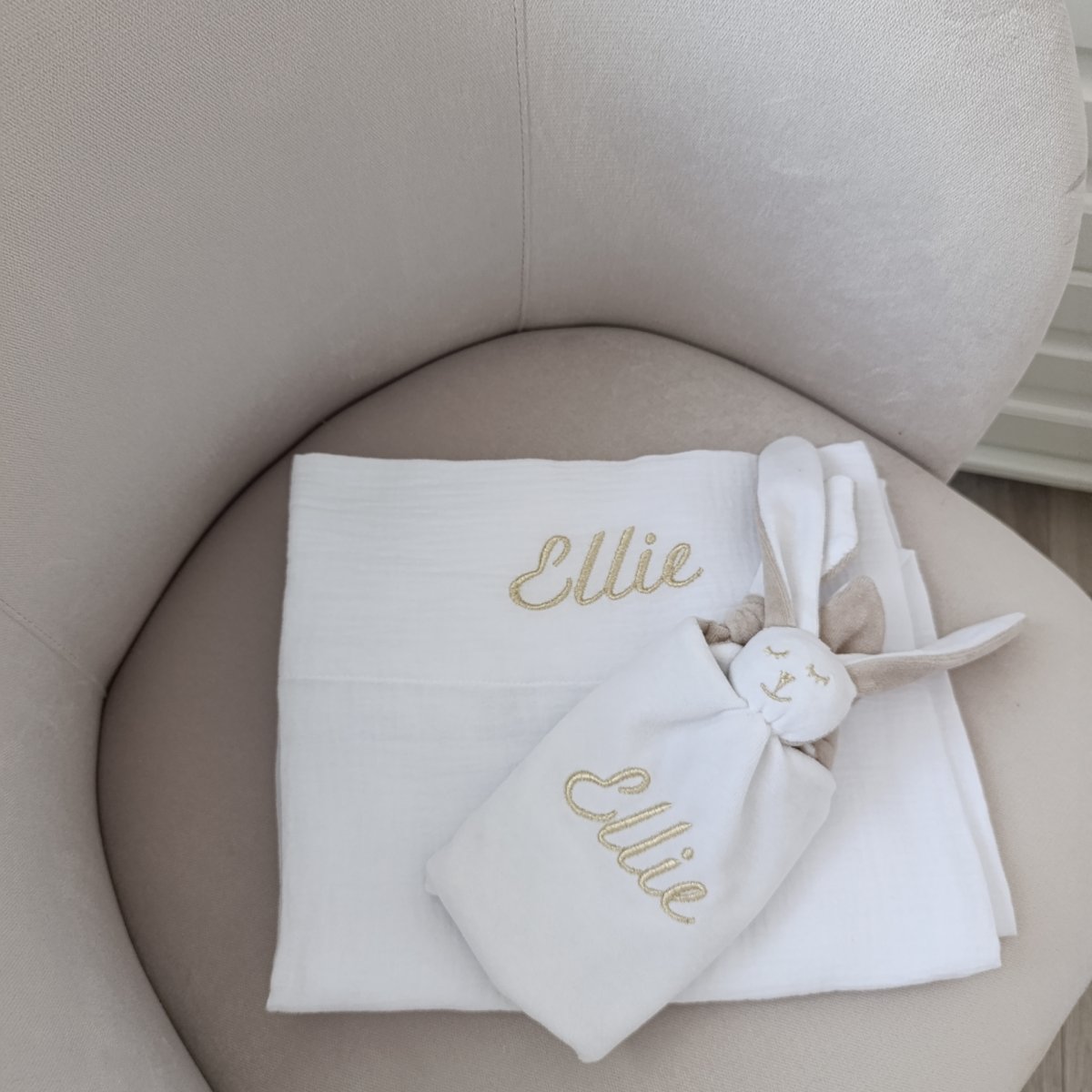 A charming sleeping bunny - the baby's first cuddly toy that will help him fall asleep. Dou dou "soaked" with the scent of mum gives the baby a sense of security and closeness. It is possible to personalize bunny by embroidering the name on its tommy.