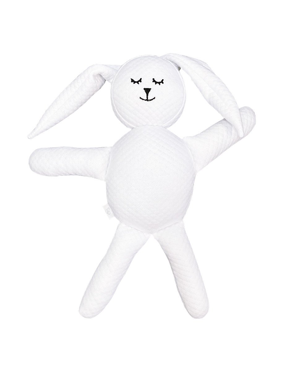 Hand made soft bunny made of white waffle finished with embroidery. Included with the ratchet. Certainly it will become a favorite cuddle for every child, while being an unusual decoration.