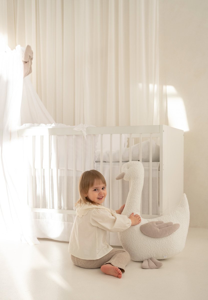 Adorable, handmade from boucle fabric goose. It will be your child's best friend and a beautiful decoration in your home. The goose is also available in a bigger size.