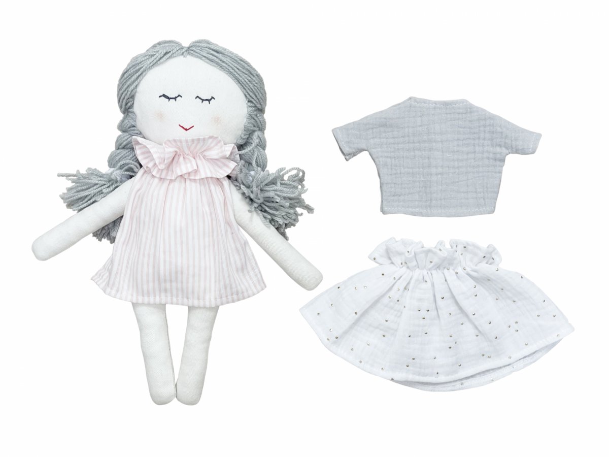 A beautiful handmade doll with an additional set of clothes.