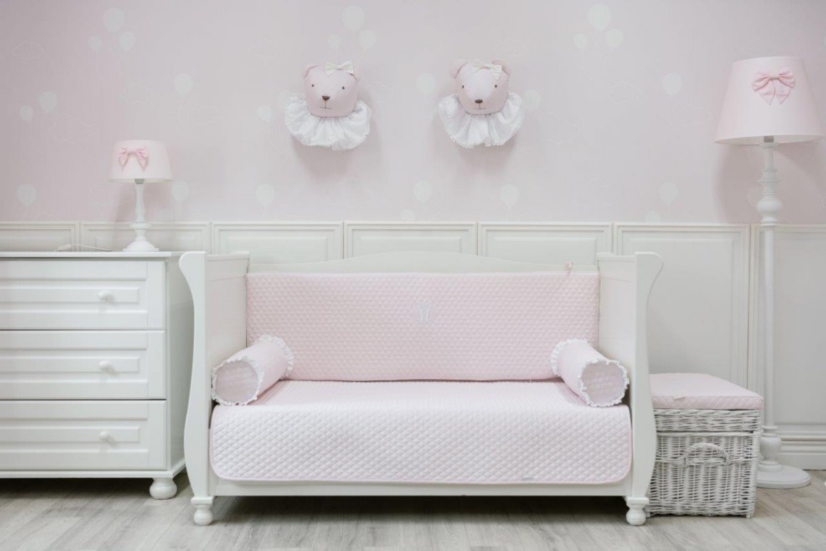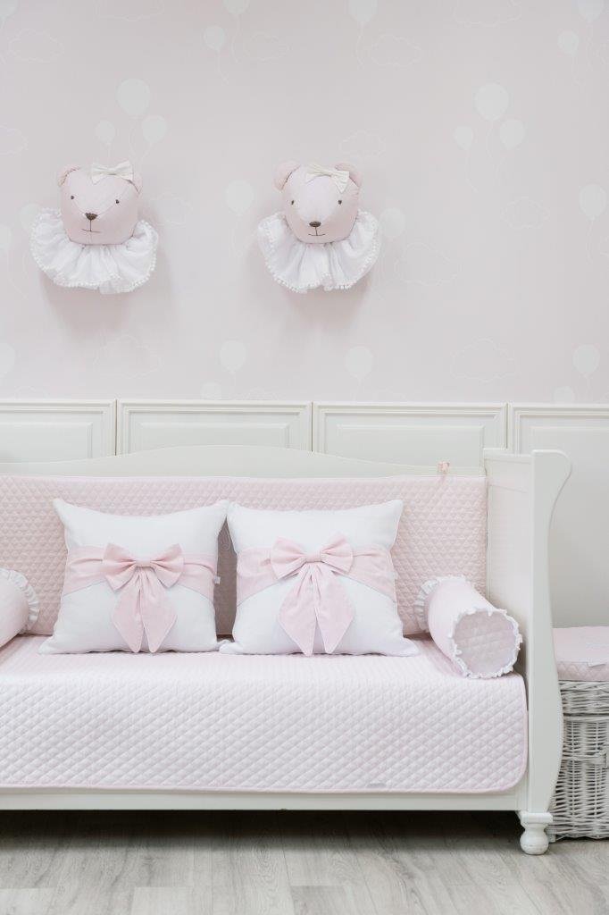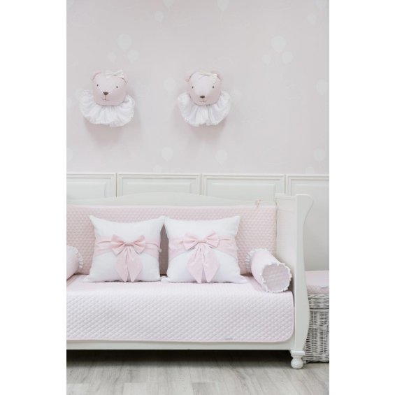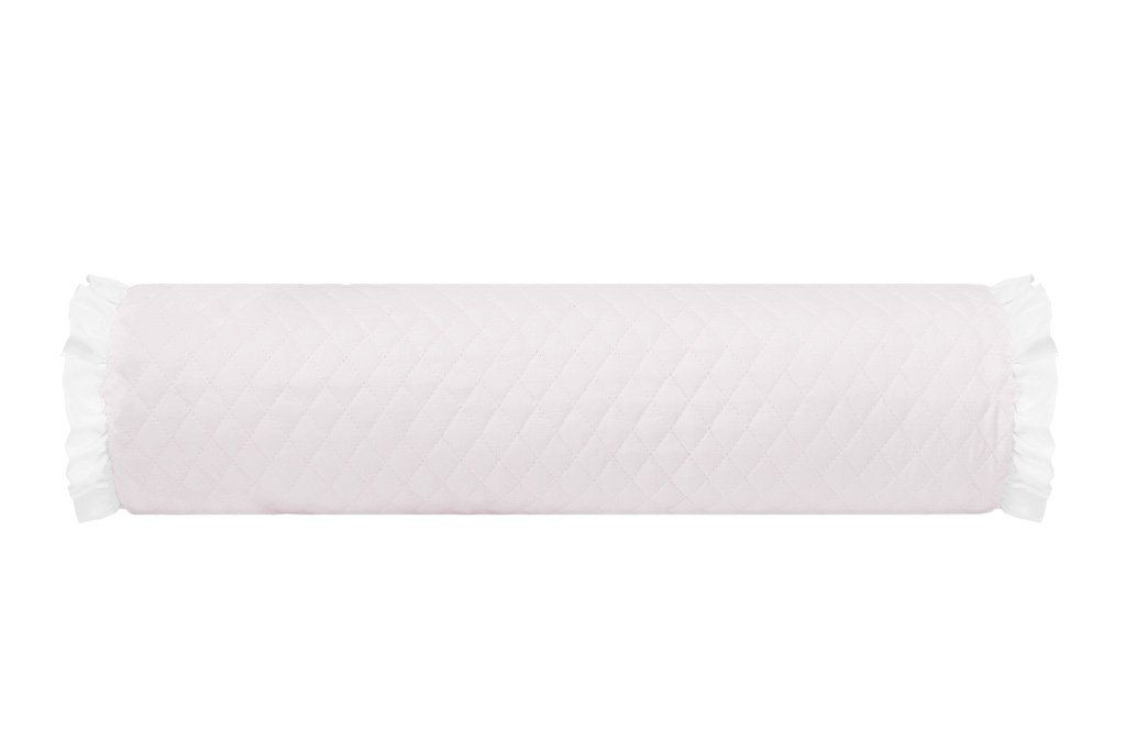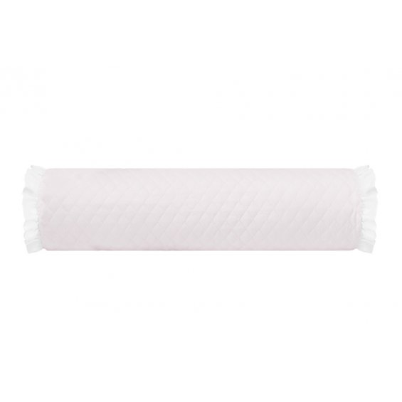 Lovely and stylish baby bolster made of very soft, quilted cotton in baby pink colour. Decorated with charming frills.