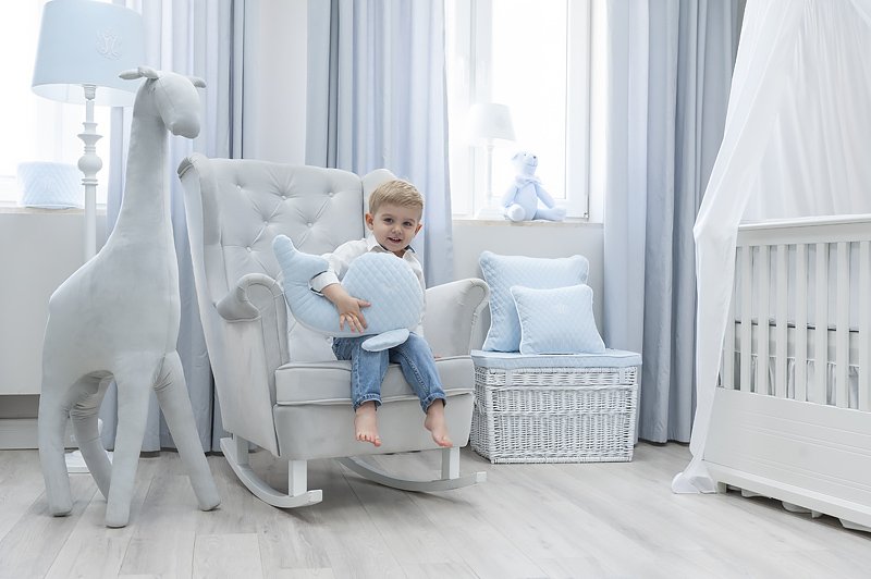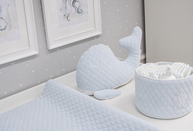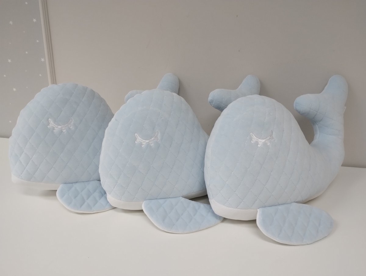 A charming whale pillow that can become your child's favorite cuddly toy. Made of soft quilted velour.