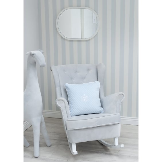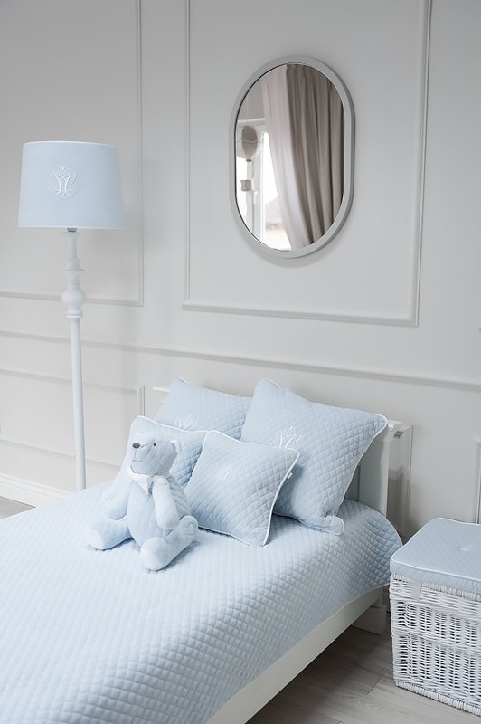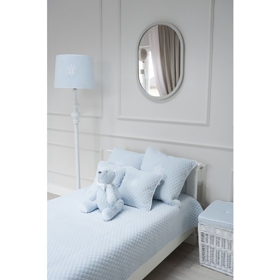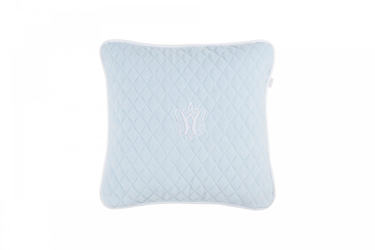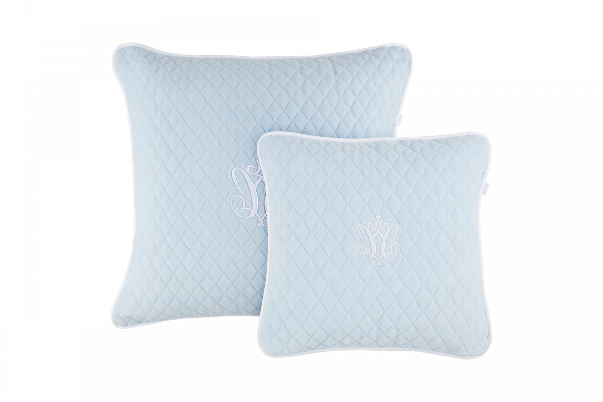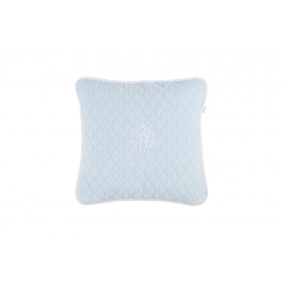 An exclusive composition of blue quilted velour and the decorative company emblem. Soft textile is finished with corded trim.