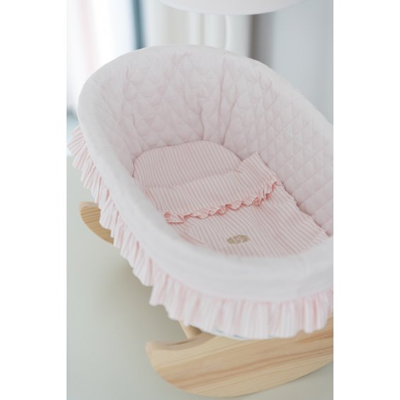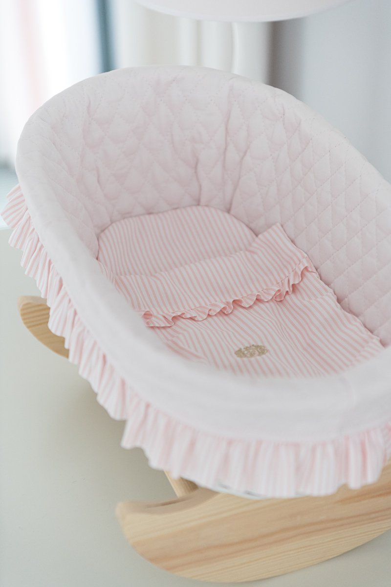 A beautiful wicker trolley with white and baby pink elements. It is handmade of the best quality Polish wicker, lacquered white and decorated with white cotton frill and a baby pink inner part. It will be a perfect decoration, or an attractive toy for your child.