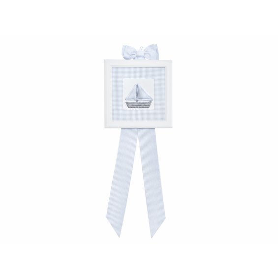 A beautiful, three-dimensional picture with a boat. The inner part of the picture is made of soft textile.