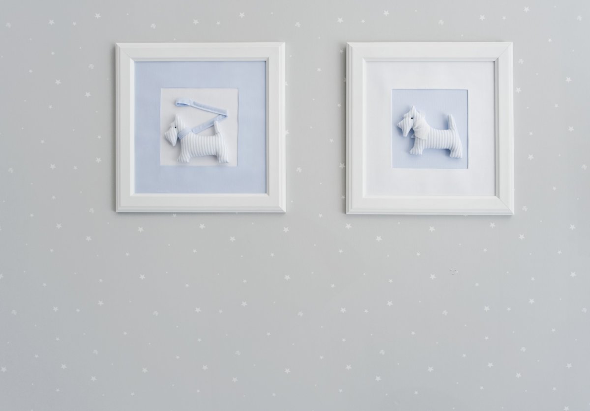 The most beloved children's pet - a doggy, in azure and white colours. The inner part of the picture is made of soft textile.