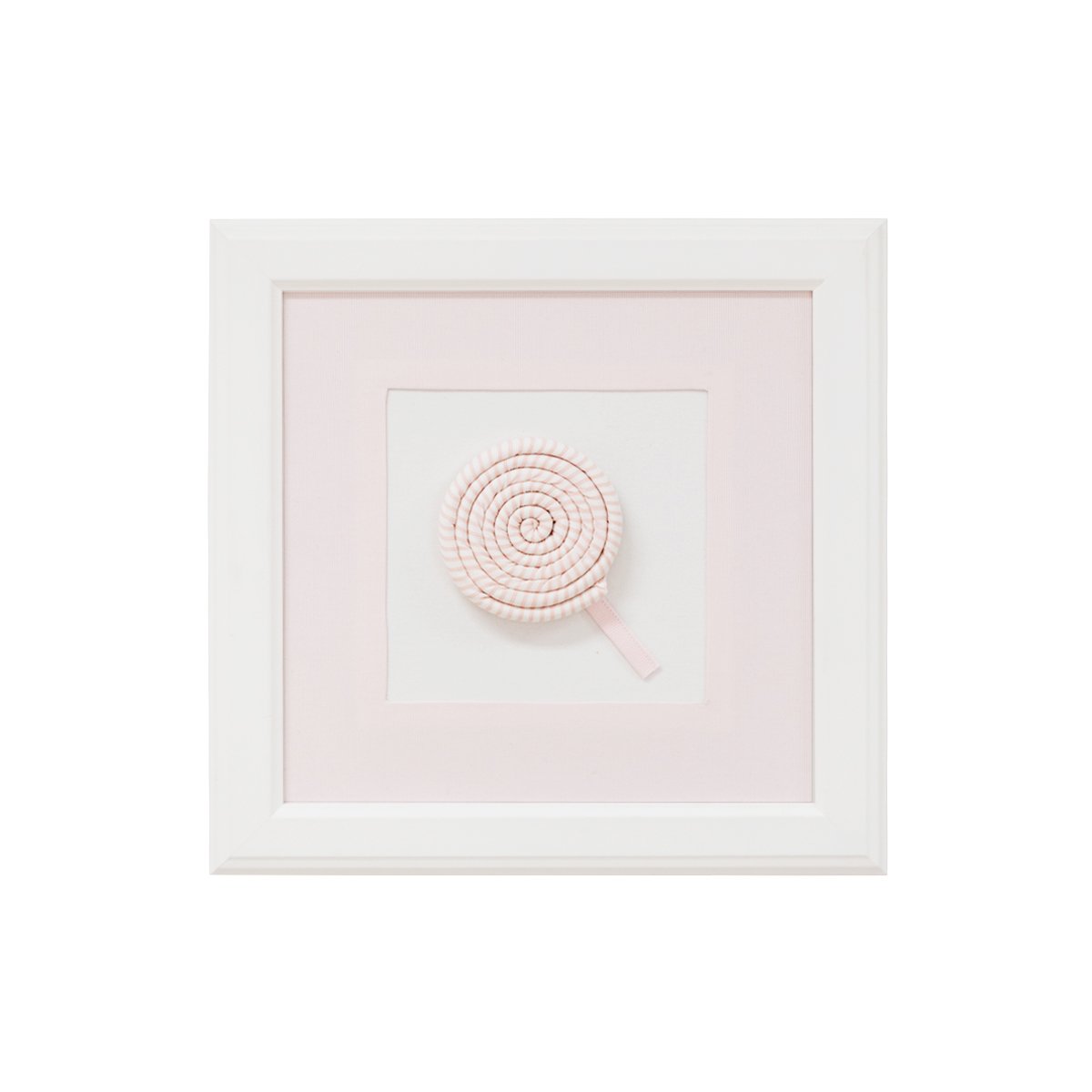 Adorable three-dimensional lolipop in baby pink and white colours. The inner part of the picture is made of textile. Passe-partout is made of baby pink textile.