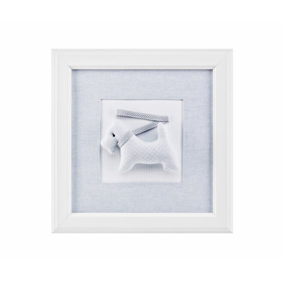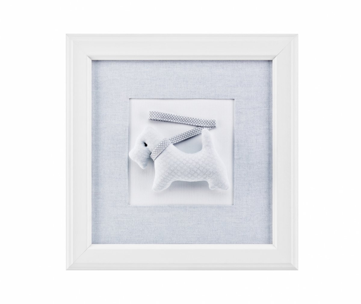 The most beloved children's pet - a doggy, in light grey colours. The inner part of the picture is made of soft textile.
