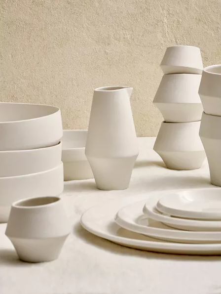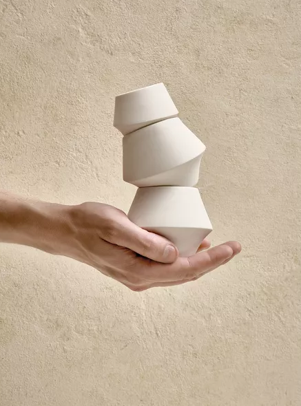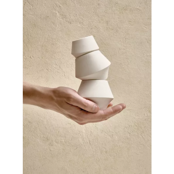 Kojin, named after the Japanese ‘Kami’, the spirit of fire, kitchen and transformation, captures a quiet strength and poetic simplicity. Crafted in pure white porcelain, each piece balances rawness and refinement, with a matte outer skin and a glossy, light-catching interior. A delicate fracture line flows through the design like a whisper, echoing the feminine form in soft, curved silhouettes. Minimal yet expressive, Kojin brings a sense of ritual to the everyday.