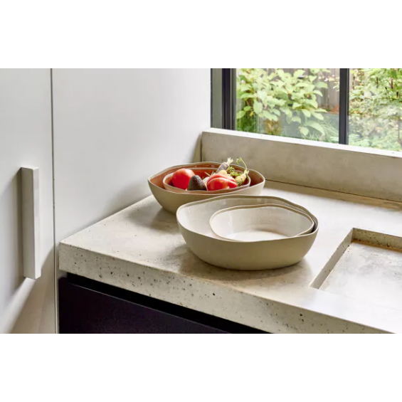 Introducing Primeval tableware, with each plate’s unique, organic shape capturing the raw and imperfect beauty of nature. This collection is named for its connection to the ancient origins of the world, evoking the creation of the very first plate. Each plate features a pure yet subtle reactive glaze inside and a sophisticated matte exterior. Available in two colours, they are perfect for mixing and matching to create a personalized table setting. Its durable porcelain is chip, scratch and stain resistant. Feel free to place it in an oven, microwave or dishwasher.