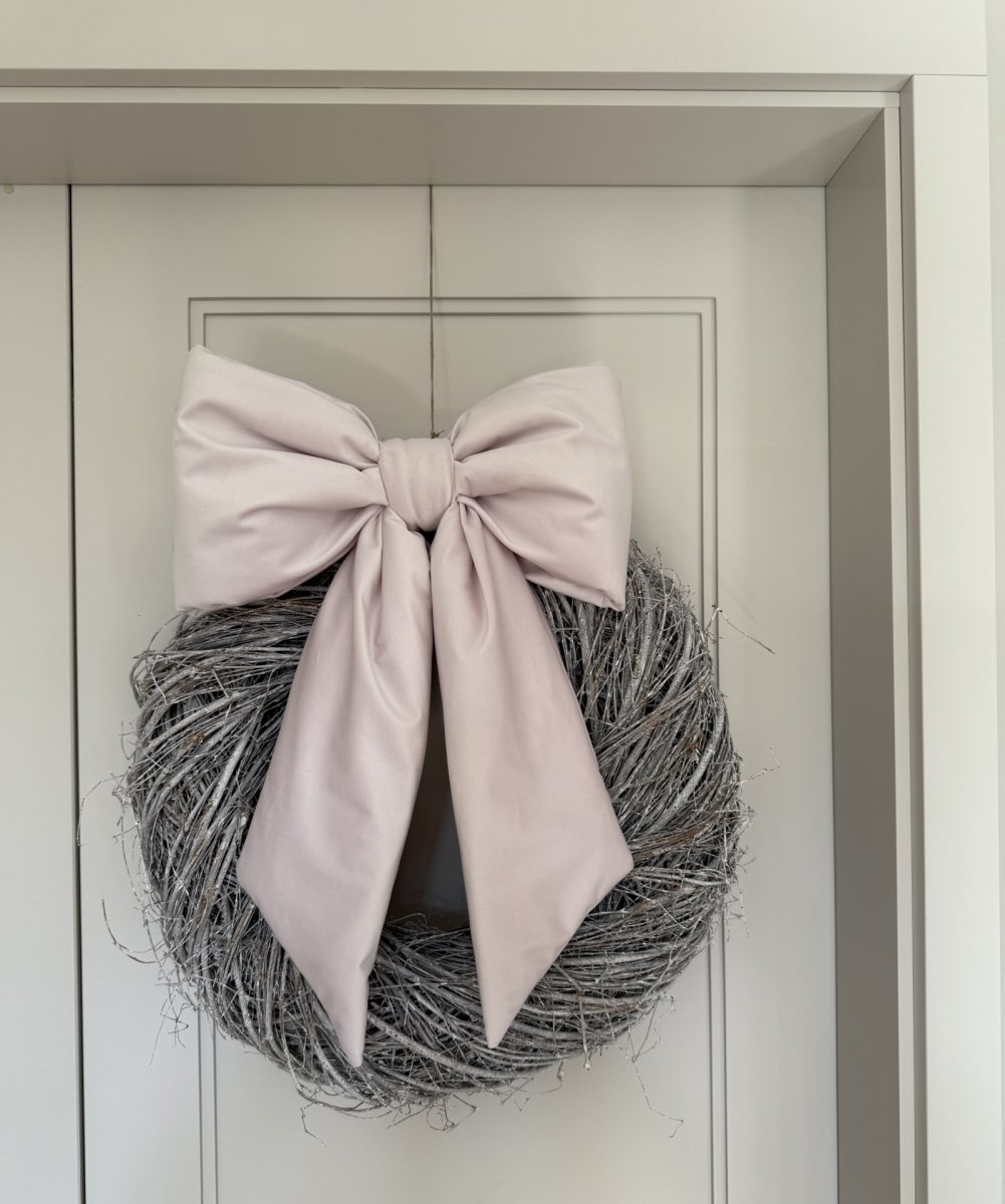 A spectacular decorative bow in size XL made of powder velvet. Thanks to the stiffening, the bow always maintains its perfect shape.