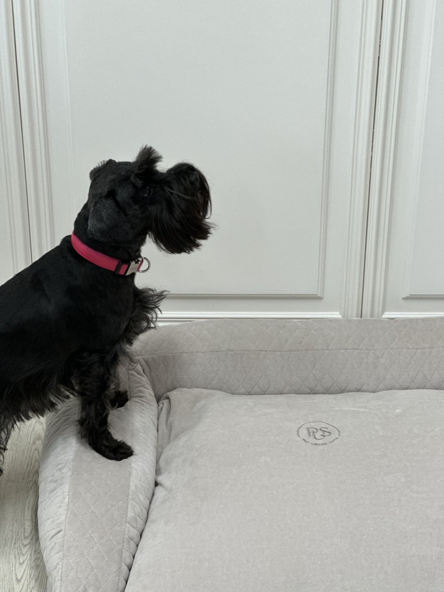 This modern and simple in form dog bed will perfectly fit into the style of your interior. Extremely comfortable for the dog and very practical to use. Equipped with a soft pillow in the middle and 3 side pillows. The inner cushion can be "folded like a sofa" to double the lying surface. The removable cover is machine washable. The bed is available in 3 sizes.