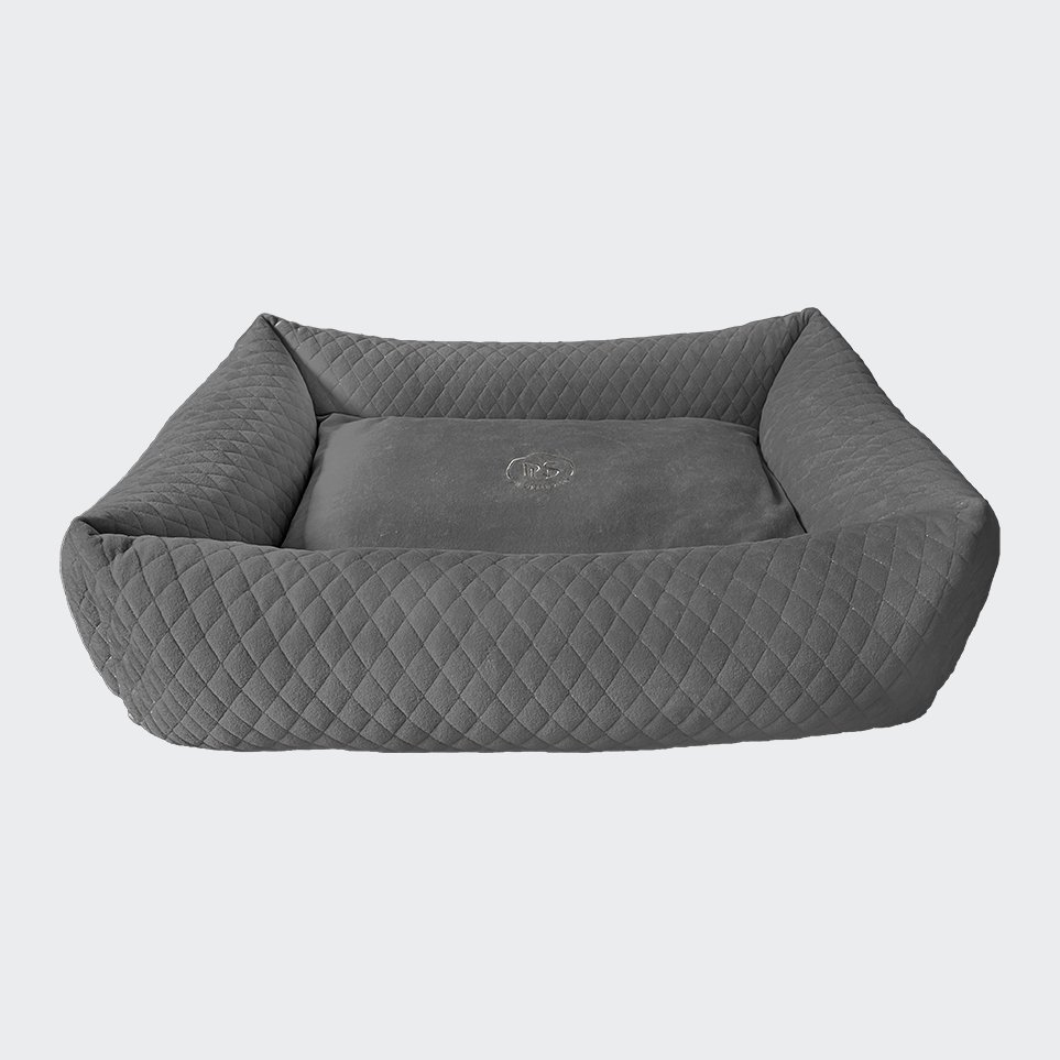 This modern and simple in form dog bed will perfectly fit into the style of your interior. Extremely comfortable for the dog and very practical to use. Equipped with a soft pillow in the middle and 4 side pillows. The removable cover is machine washable. The bed is available in 3 sizes.