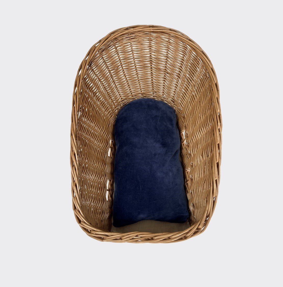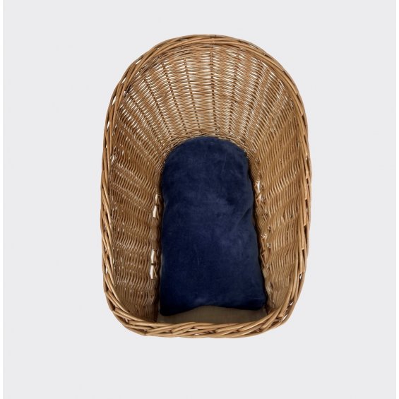 MATERIALS: basket - varnished wicker and pine wood; grille - metal; straps - eco leather; cover - velour (80% cotton, 20% polyester); filling - polyester fibers. Velour is a pile fabric on which the embroidery process can leave a hoop mark that should diminish over time