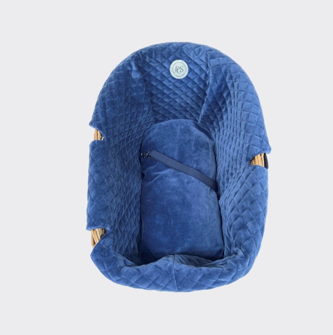 MATERIALS: basket - varnished wicker and pine wood; grille - metal; straps - eco leather; cover - velour (80% cotton, 20% polyester); filling - polyester fibers. Velour is a pile fabric on which the embroidery process can leave a hoop mark that should diminish over time