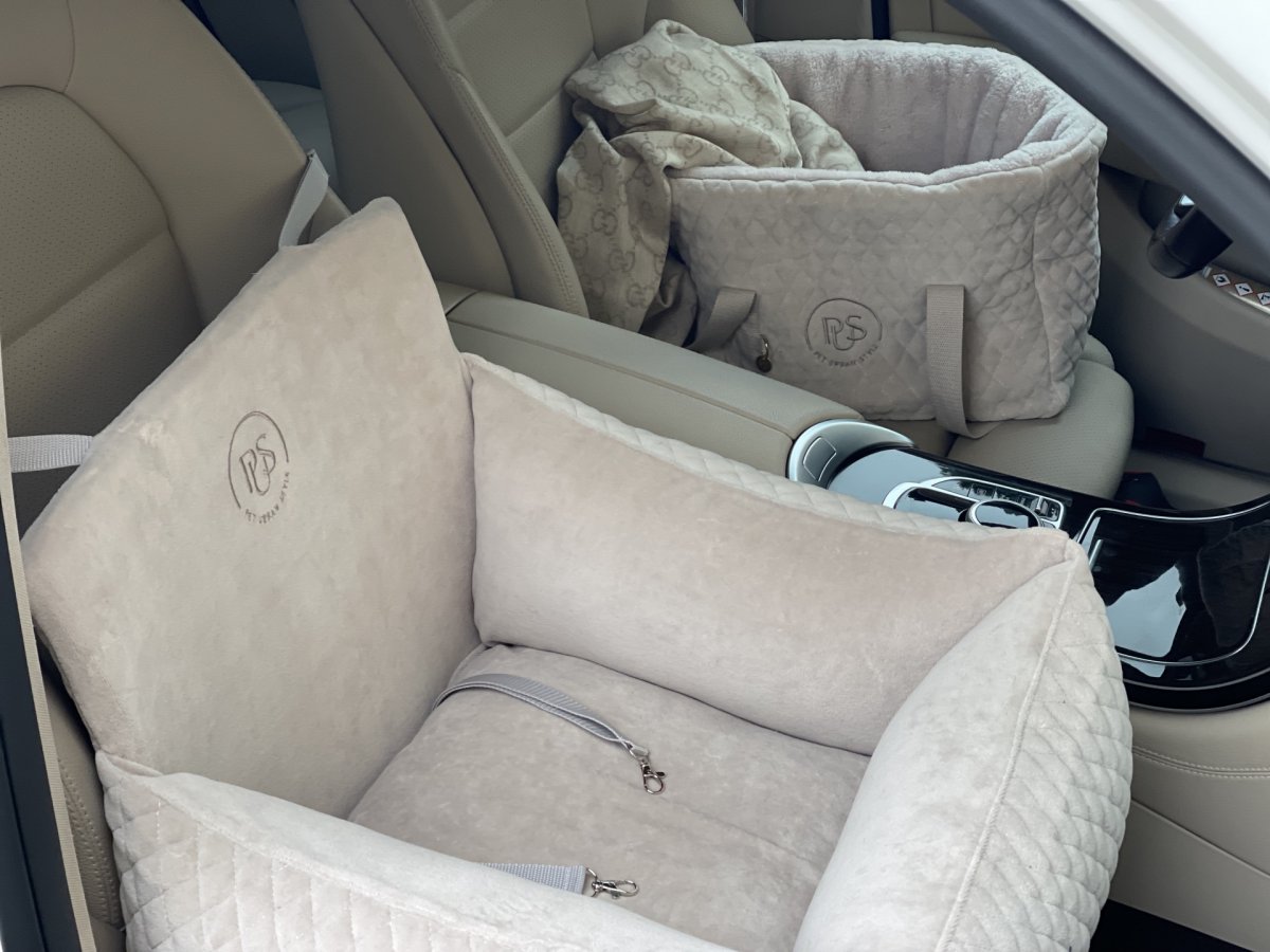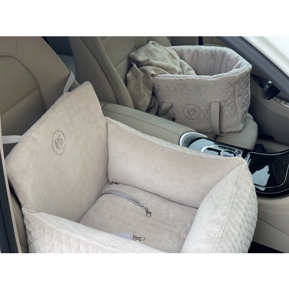 The elegant car seat, comfortable for the dog, ensures safety while travelling. Best quality, stable construction and a belt system make it impossible for the dog to move around the car while driving. The internal belt system is designed to fasten the dog, while two sets of external belts are used to fasten it to the car seat. The soft interior creates a comfortable "nest", and the side cushions allow the dog to rest his head. Made of velour, it will beautifully match the upholstery of your car, and at the same time it is very practical to use - the removable cover is machine washable.