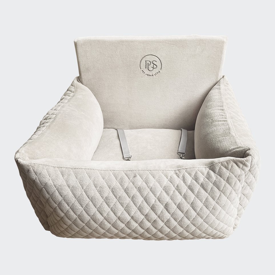The elegant car seat, comfortable for the dog, ensures safety while travelling. Best quality, stable construction and a belt system make it impossible for the dog to move around the car while driving. The internal belt system is designed to fasten the dog, while two sets of external belts are used to fasten it to the car seat. The soft interior creates a comfortable "nest", and the side cushions allow the dog to rest his head. Made of velour, it will beautifully match the upholstery of your car, and at the same time it is very practical to use - the removable cover is machine washable.