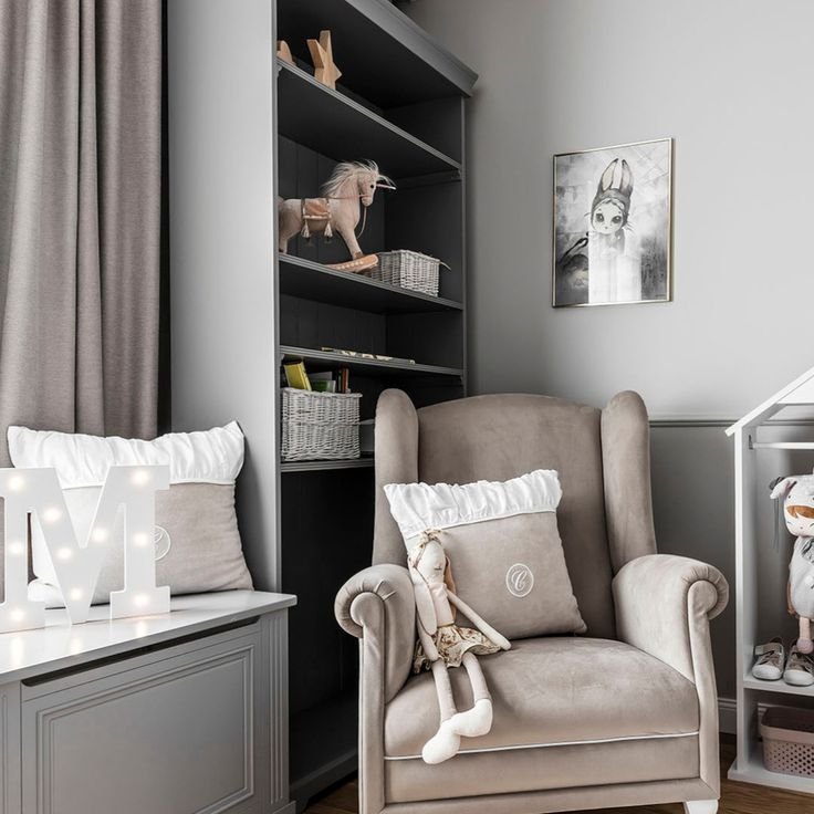A large, very comfortable armchair, 'eared' type, made of high-quality washable textile in chilly, stony beige colour. The armchair is decorated with grey corded trim and exclusive emblem with 'C' letter. Our feeding armchair will be appreciated by every nursing mother, because of its 'ears' and a high back. Moreover, it will enrich every interior- child room, living room and others.