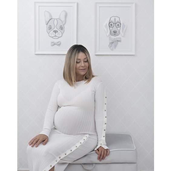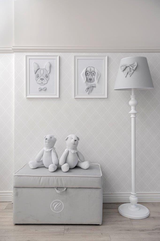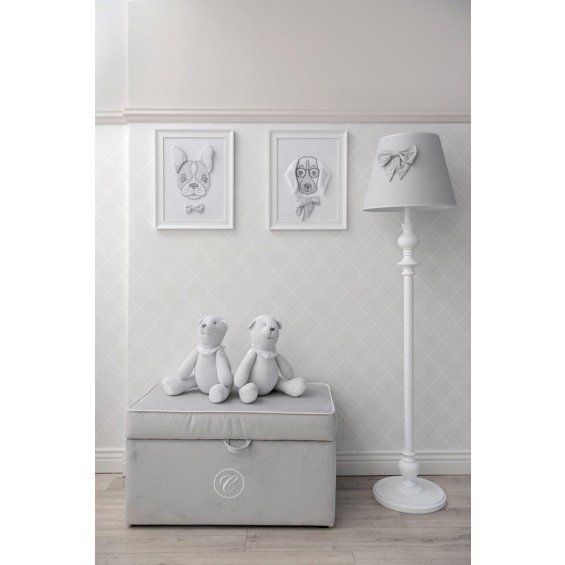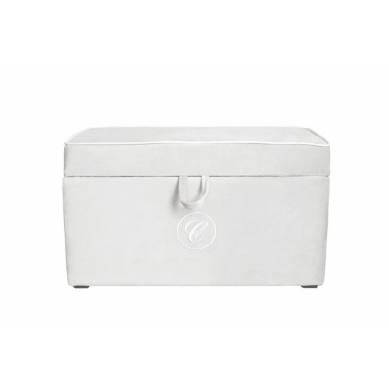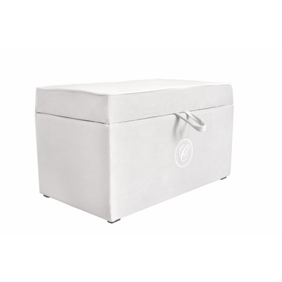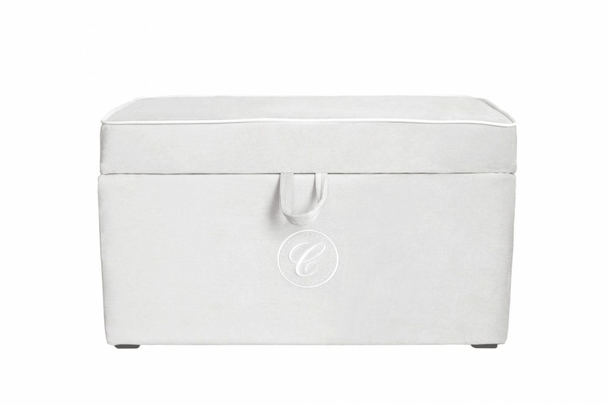 An elegant and functional trunk upholstered with high-quality washable textile in ivory colour. It is decorated with white corder trim and an exclusive emblem with 'C' letter. Very capacious trunk will help you to store toys and other accessories in your baby's room.