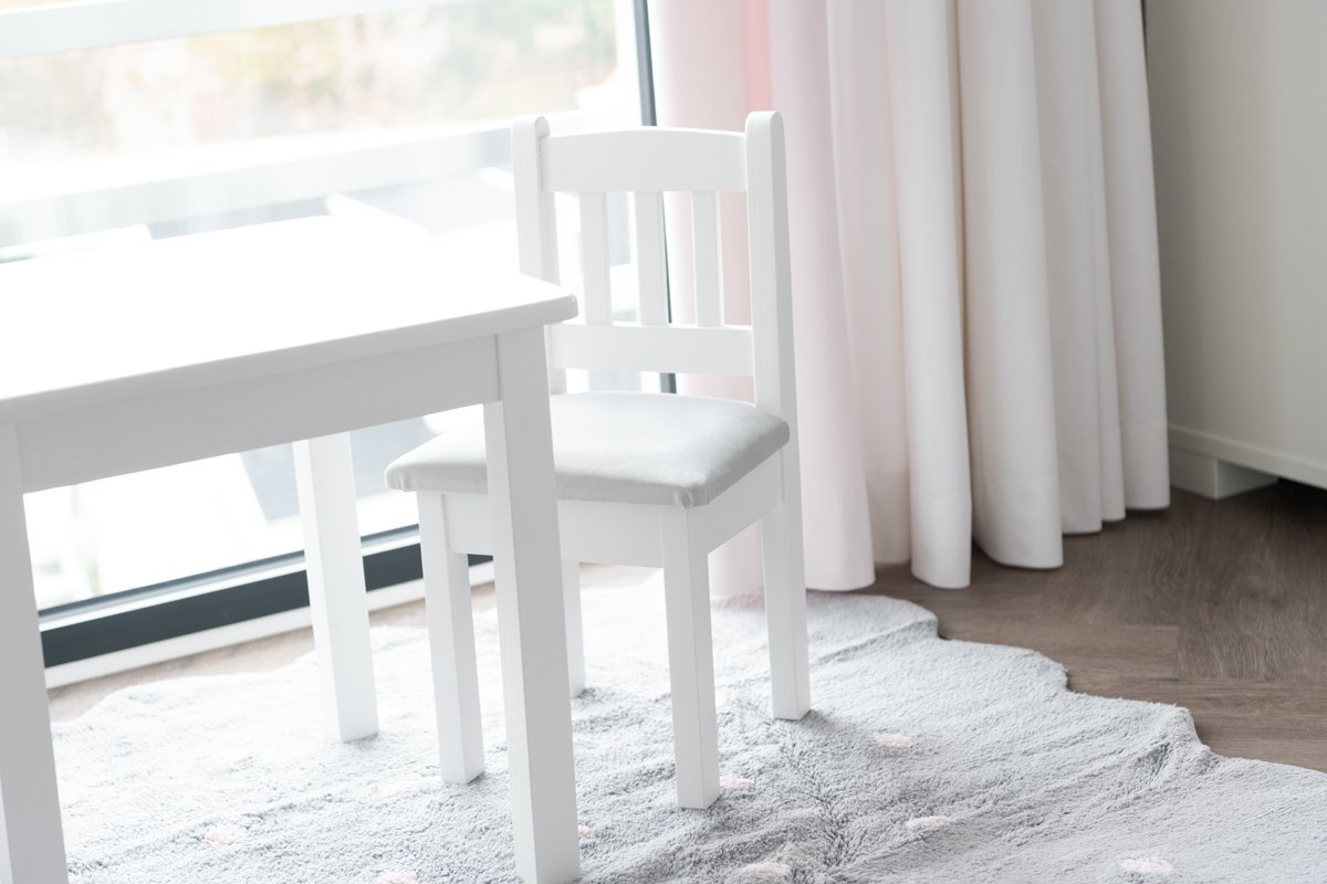 A wooden table perfect for a baby's room. A great place to play, paint and creative skills. It looks beautiful with small little chairs. Furniture packed in flat pack, self-assembly.