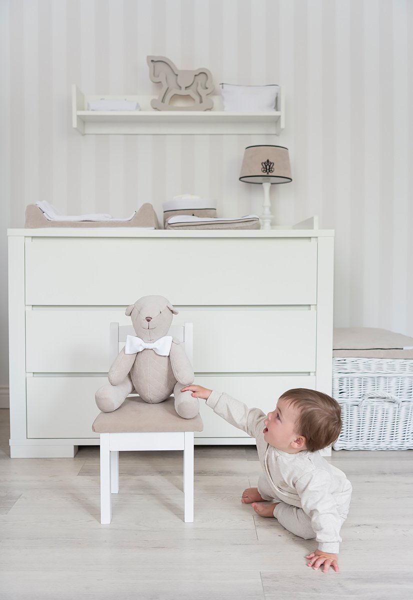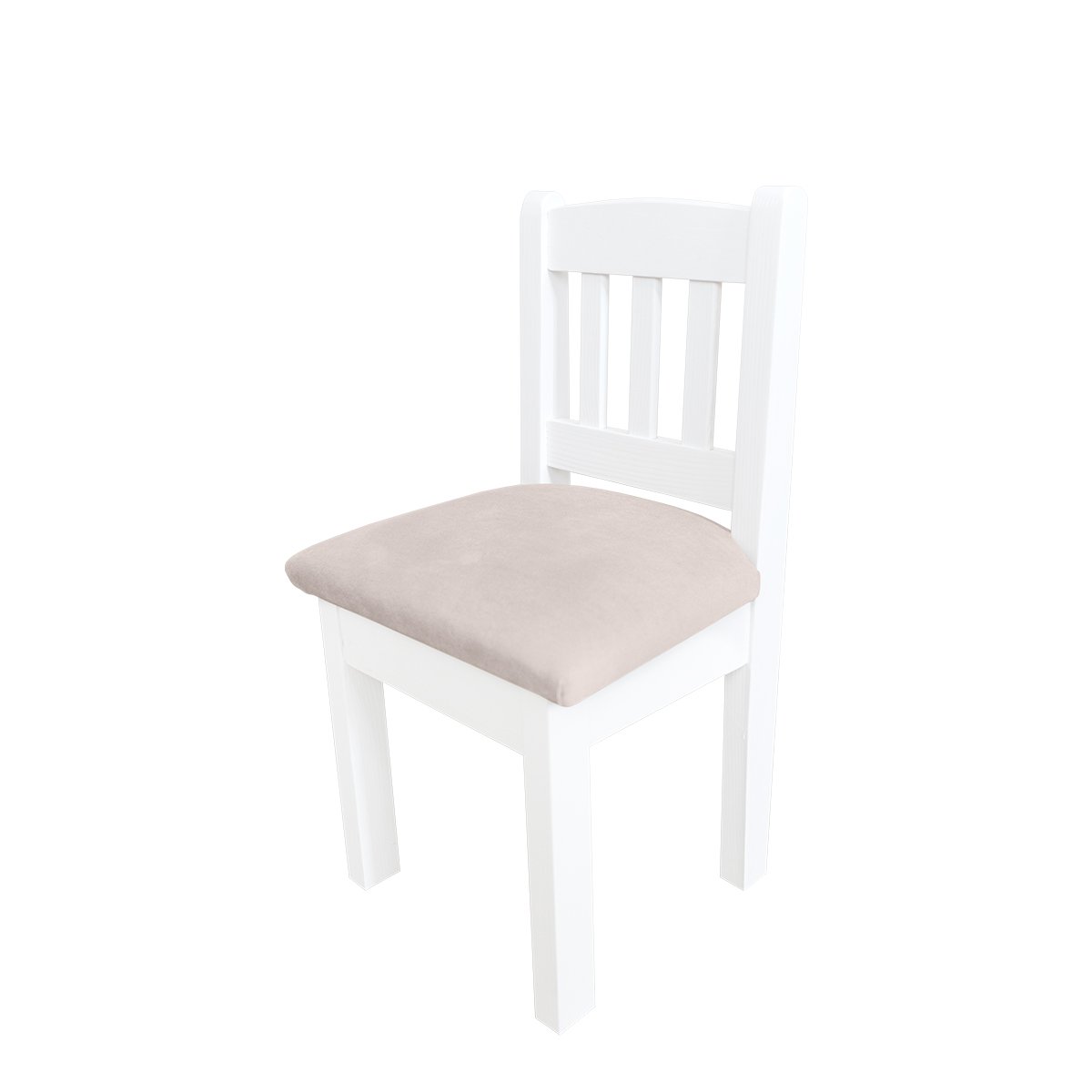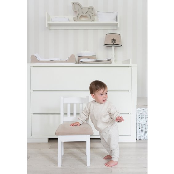 A beautiful chair made of pine wood is a perfect piece of furniture to your kid's room. The construction of the chair is very stable and its edges are oval what eliminates the possibility of injuries. The chair has a beige upholstered seat