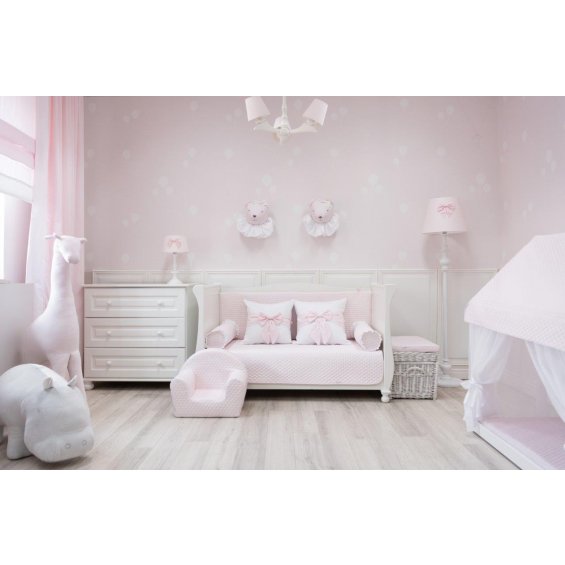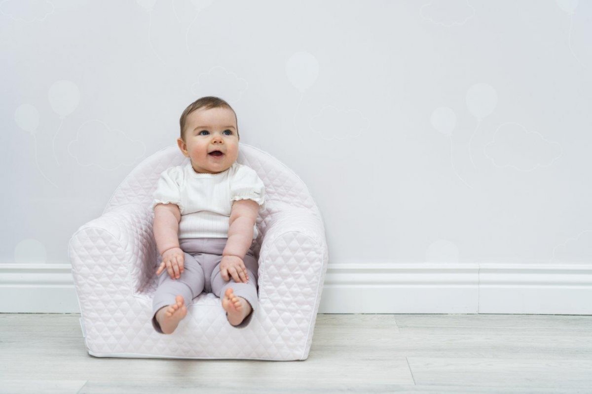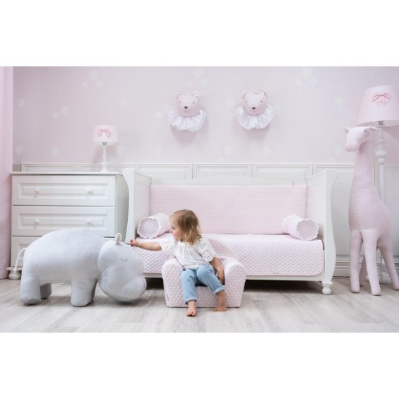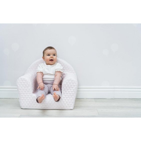 A tiny foam seat for the youngest children in baby pink colour. Hemmed with quilted cotton, decorated with a white welt and a company emblem. It will be a great first seat and will be a beautiful addition to the room. The cover is removable for washing.