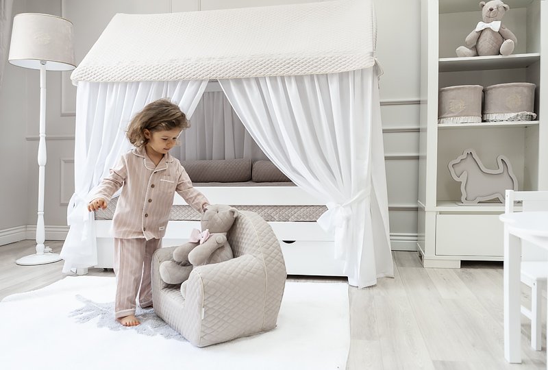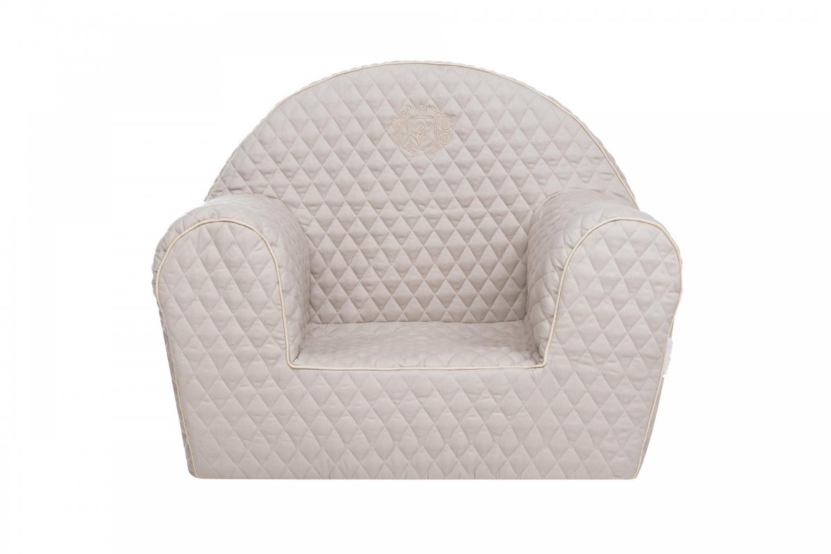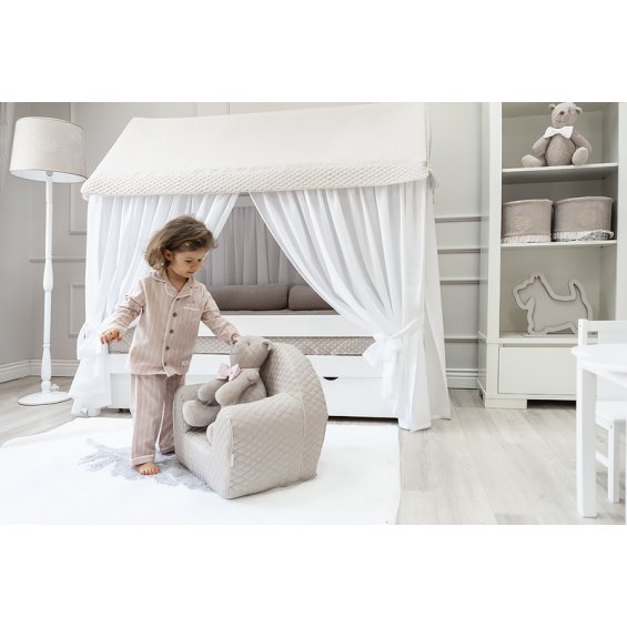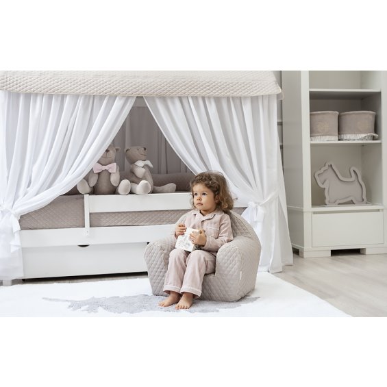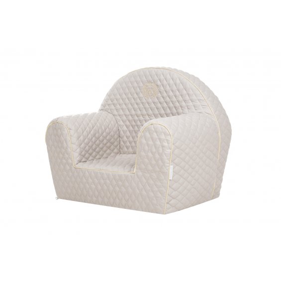A tiny foam seat for the youngest children in light beige colour. Hemmed with quilted cotton, decorated with a gold welt and a company emblem. It will be a great first seat and will be a beautiful addition to the room. The cover is removable for washing.