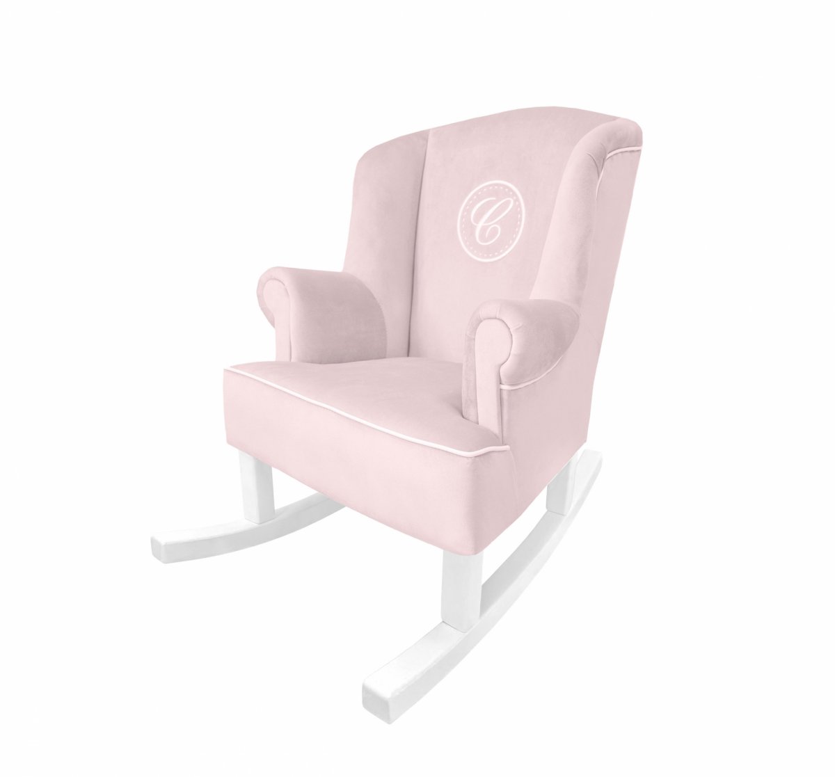 An elegant, stylized mini rocking armchair covered with high-quality washable textile in beautiful pink colour. Decorated with exclusive "C" letter. Beautiful, classic furniture that enrich every girl room.