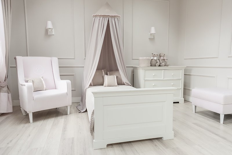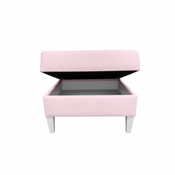 An elegant pouf made of washable baby pink fabric. The pouf is also a trunk - it has an opening lid and storage space. It is a beautiful piece of furniture for the child room, the bedroom or the living room.