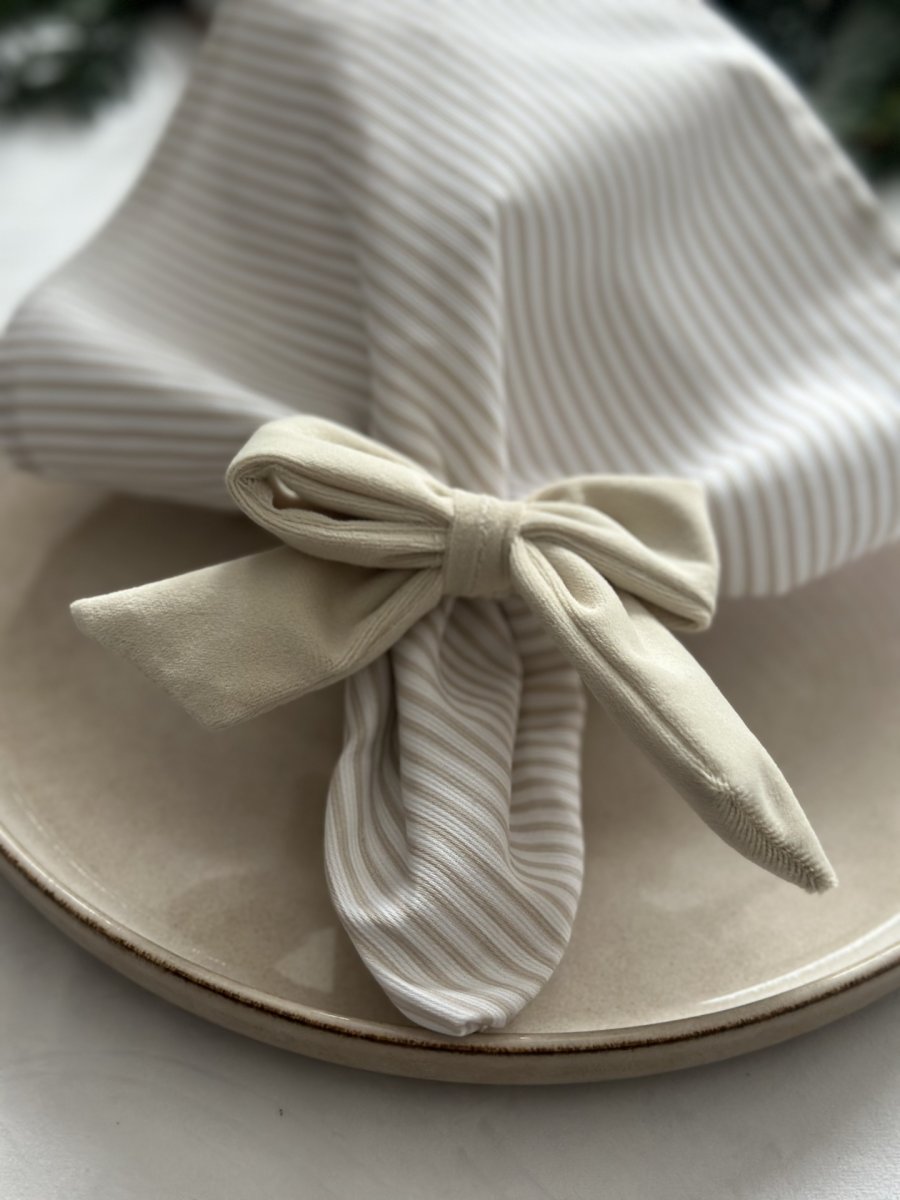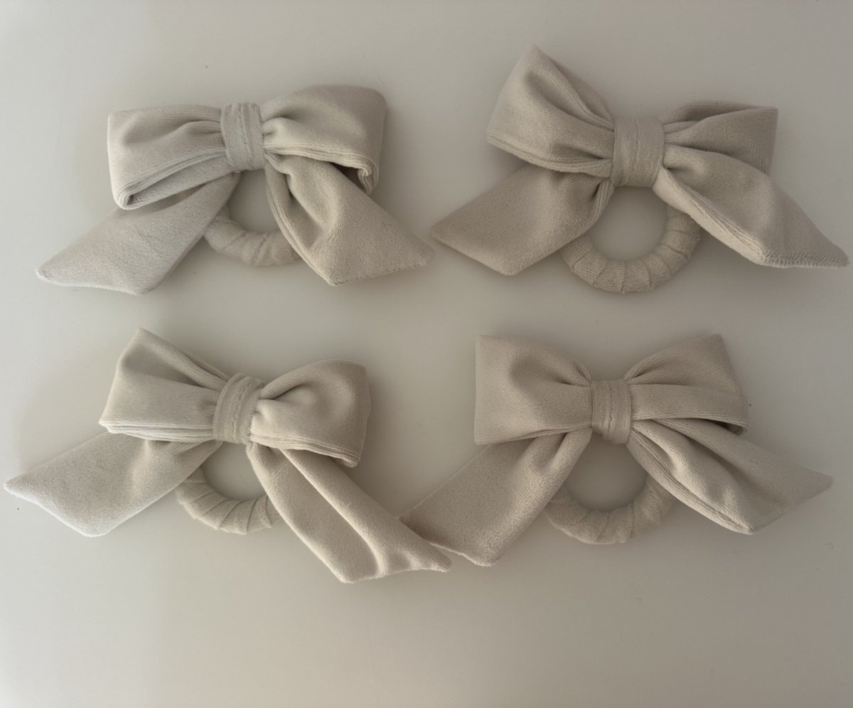 Napkin bands are an elegant and functional accessory that adds a special touch to the table during special occasions. Made of high quality materials. They have a ring in which a napkin can be easily inserted. The wooden hoop is finished with velvet and decorated with a beutiful bow.
