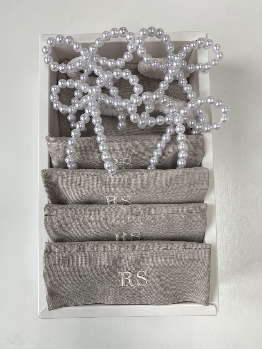 Fabric napkins are an elegant and stylish decoration for any table. The set consists of 4 beige napkins with embroidery sewn from high-quality beige cotton. Matching bands can be purchased for the set.