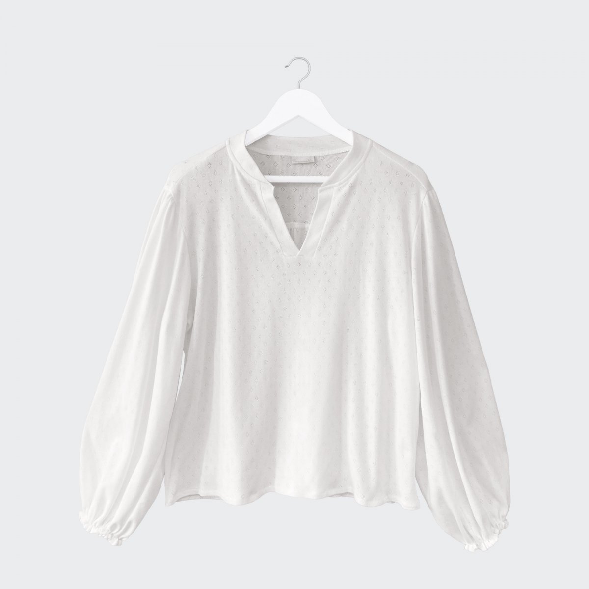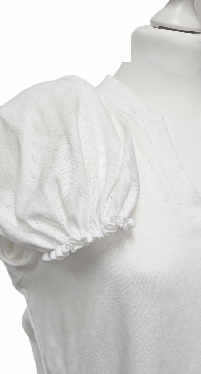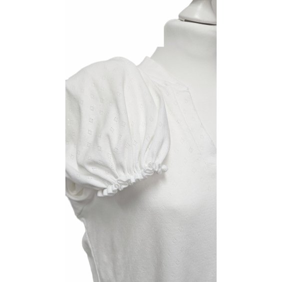 Sleeping blouse with puffy sleeves made of skin-friendly ecru cotton with a delicate openwork pattern.